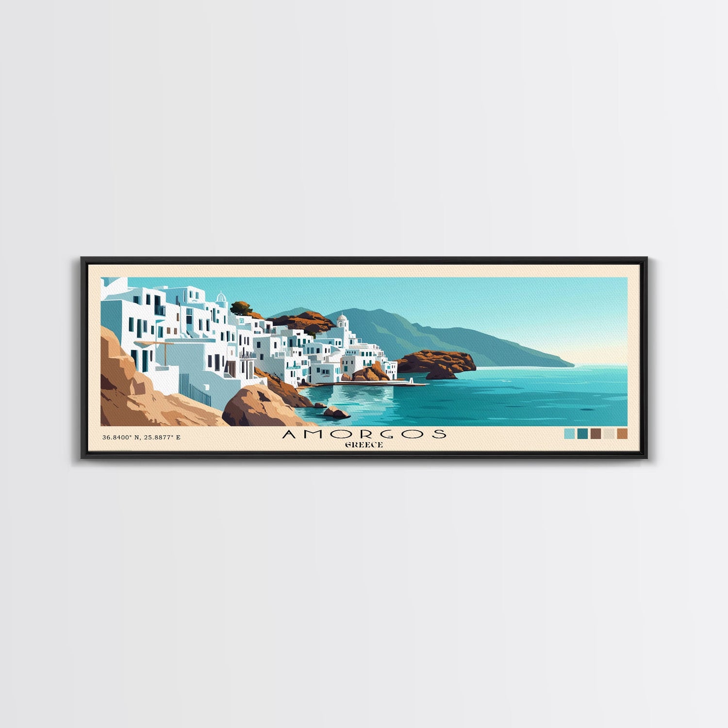 Amorgos, Greece Panoramic Print, Vacation Gift, Greece Wall Art, Beach Painting, Beach Decor, Large Wall Art, Wood Frame Art