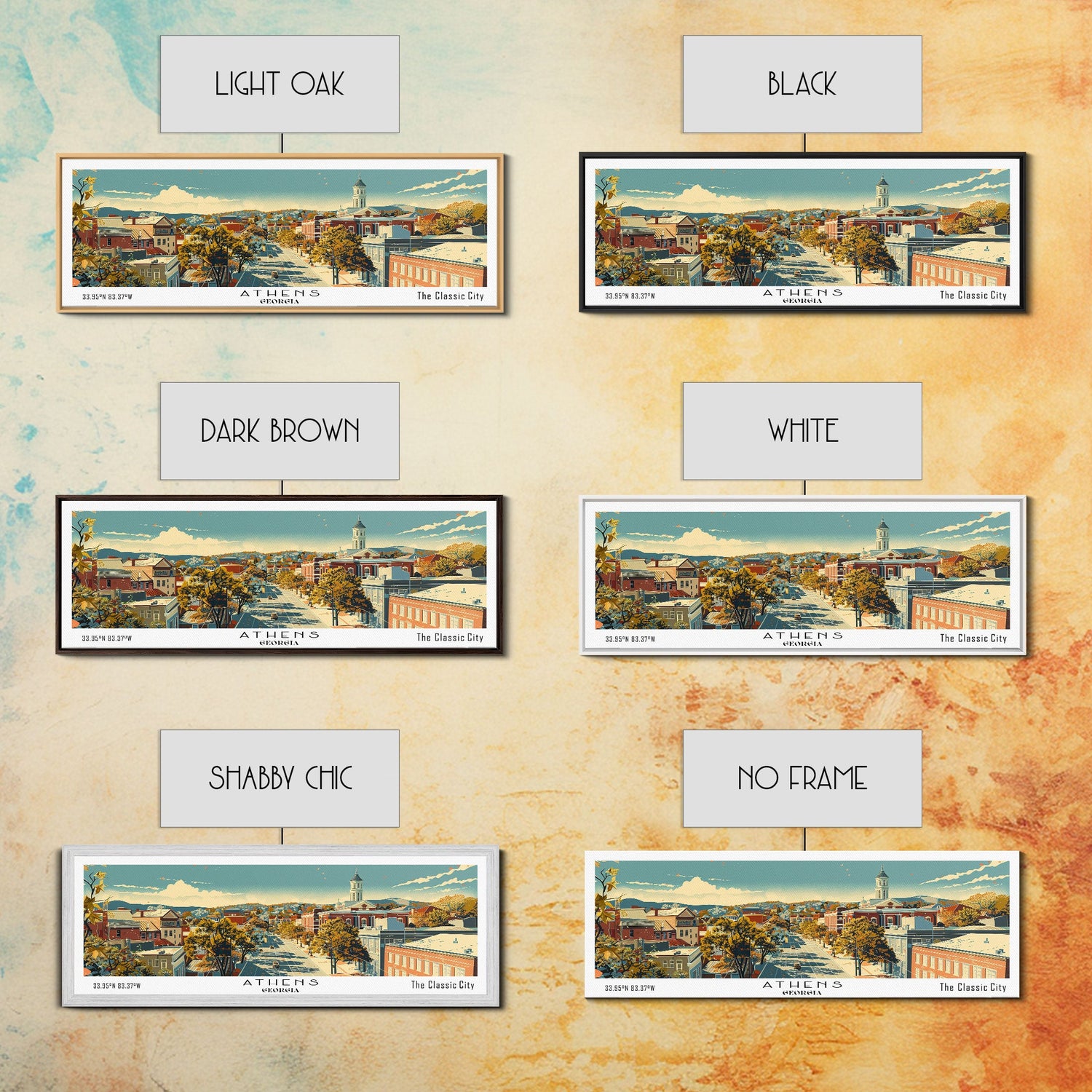 Athens Georgia Panoramic Painting, Mid Century Modern Framed Canvas Print, Retro Pop Art Travel Poster, Living Room Wall Art Decor, City Print
