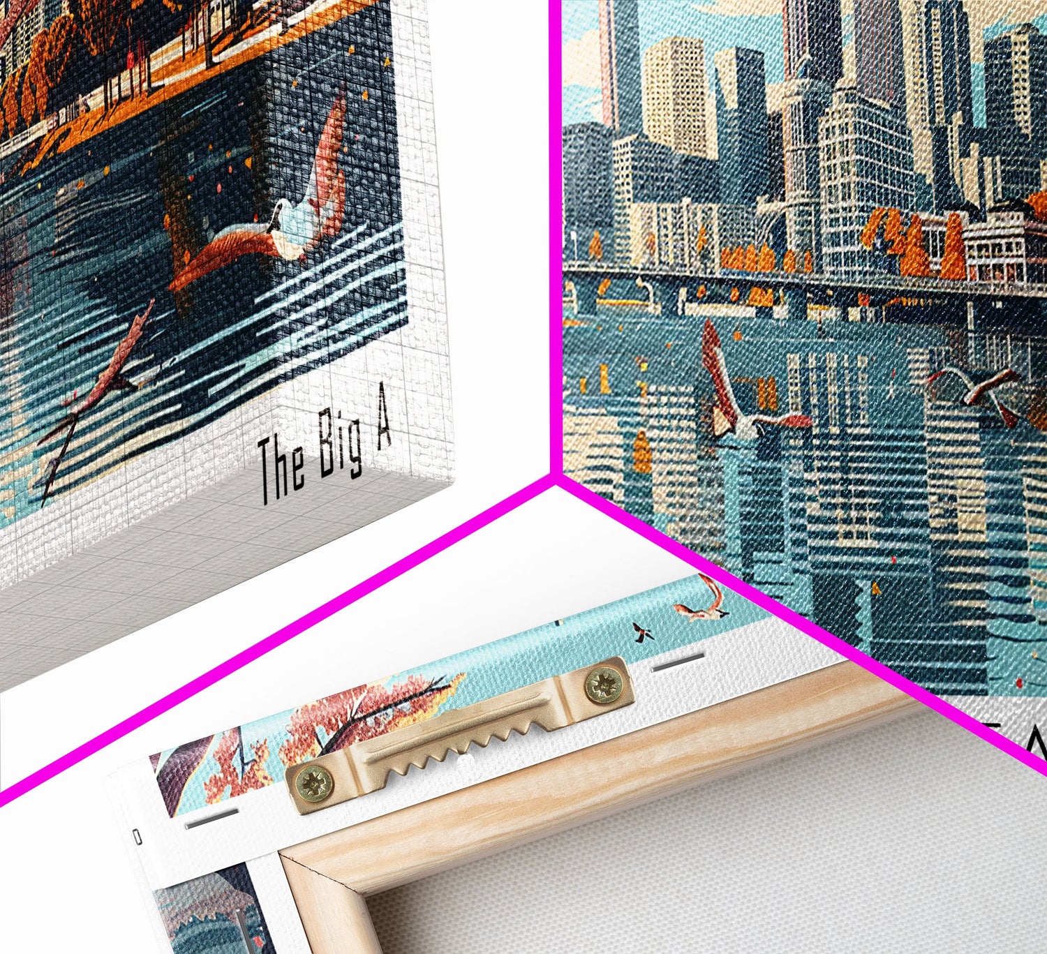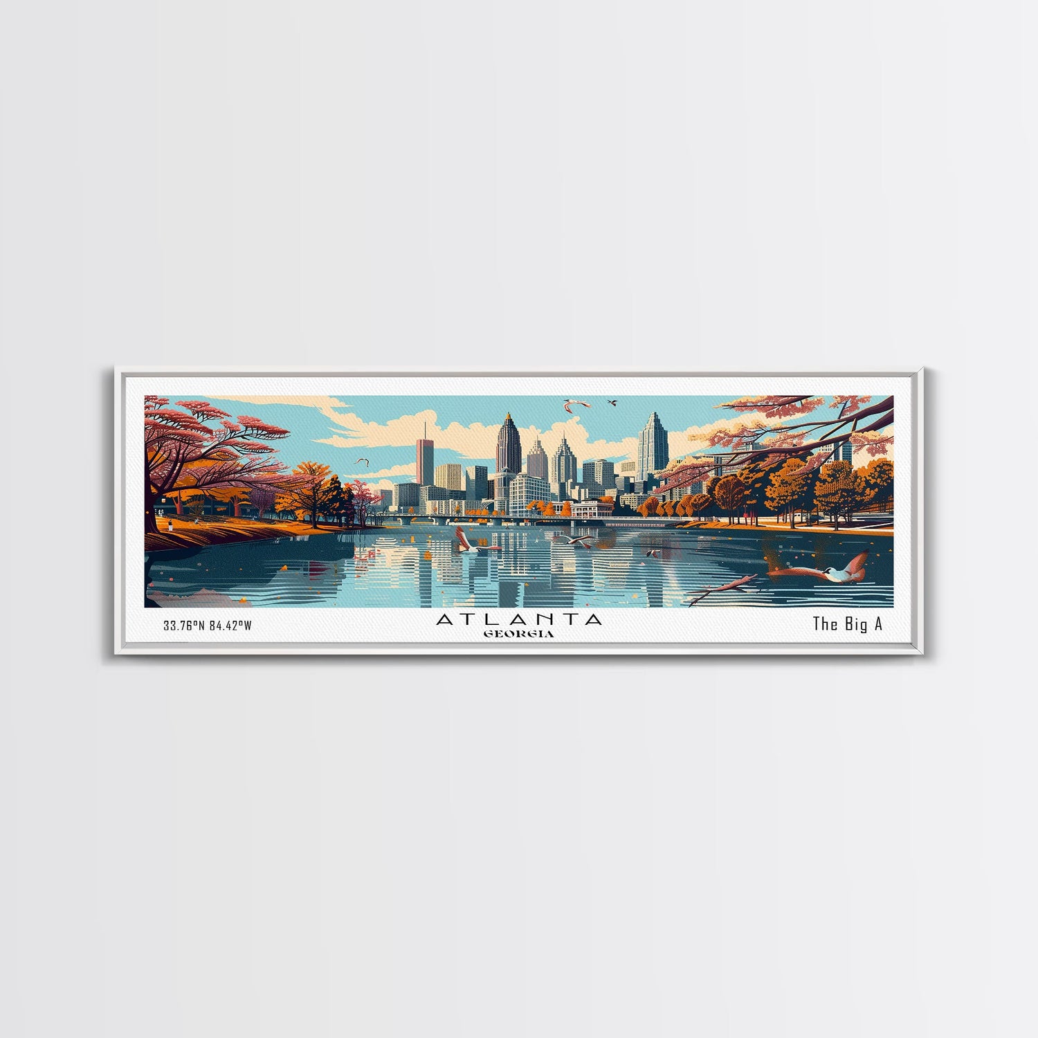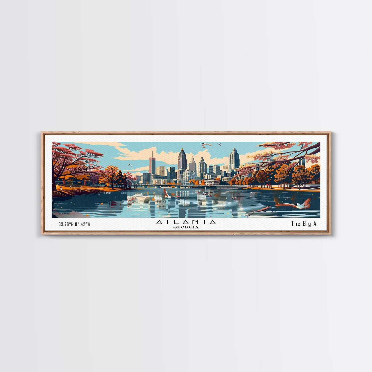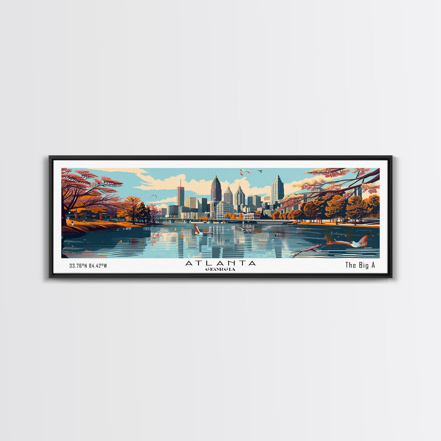 Atlanta Georgia Panoramic Painting, Framed Canvas Print, Mid Century Modern Wall Art, Retro Pop Art Travel Poster, Home Decor, City Art