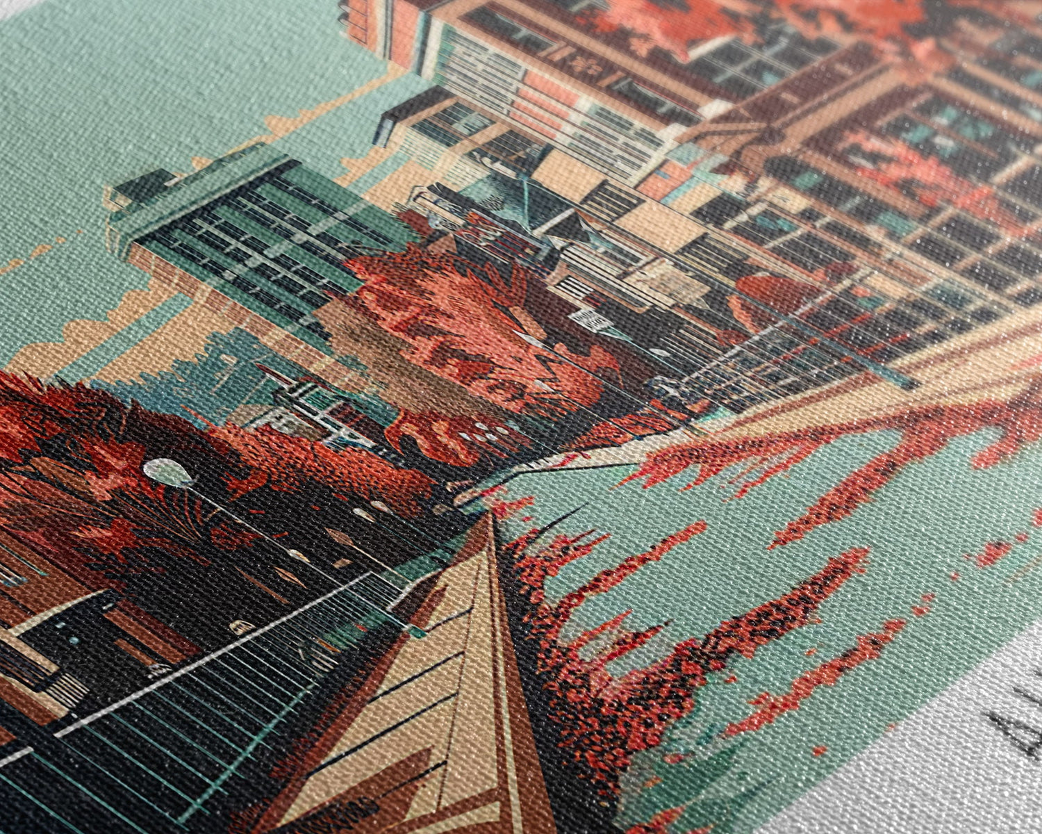 Augusta Georgia Panoramic Painting, Framed Canvas Print, Mid Century Modern Wall Art, Retro Pop Art Travel Poster, Living Room Decor, City Art