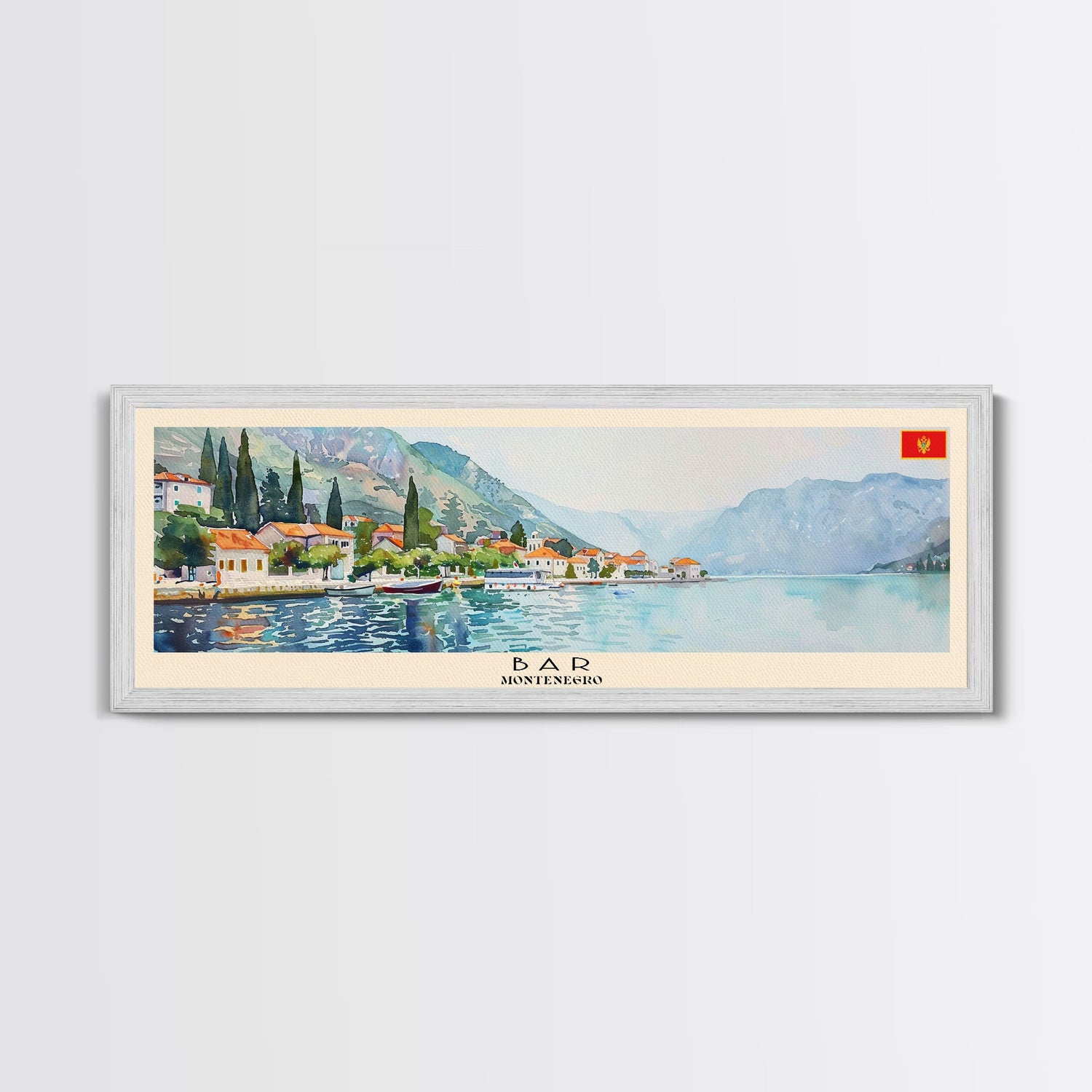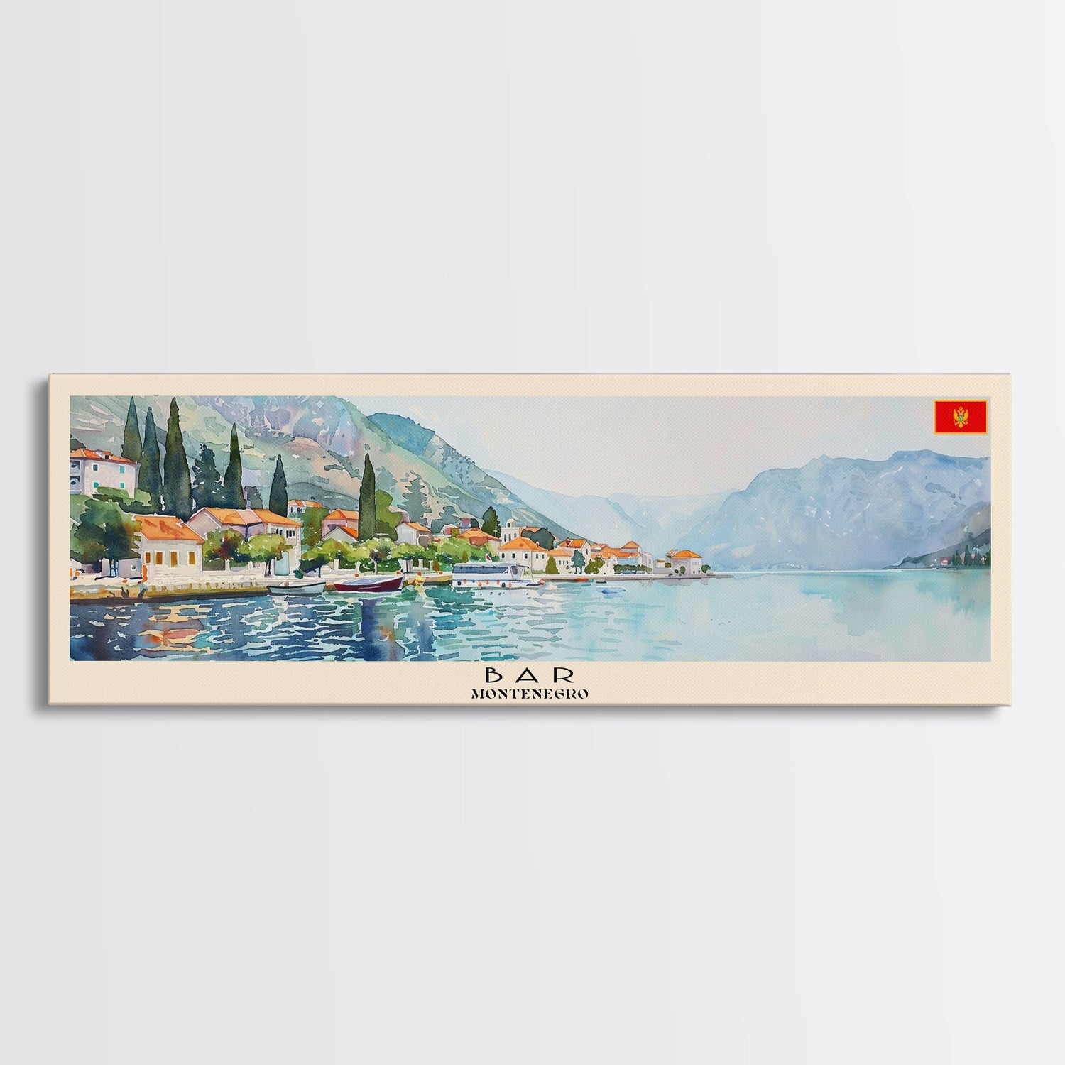 Bar Montenegro Travel Print Wall Art, Panoramic City Art, Travel Art, Wall Decor, Vacation Gift, Framed Canvas Print Or Metal Art - 10x30 Inches / No Frame - Stretched Canvas Only is backordered and will ship as soon as it is back in stock.
