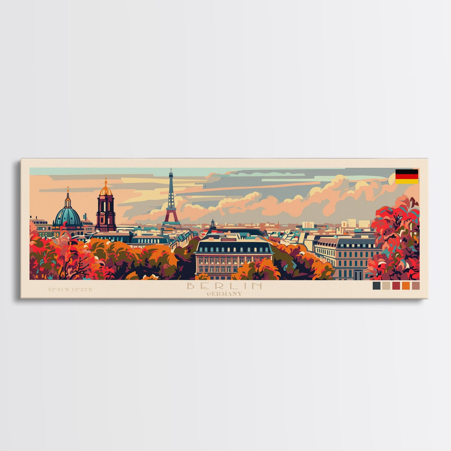 Berlin Germany Travel Print Wall Art, Panoramic City Art, Travel Art, Wall Decor, Vacation Gift, Framed Canvas Print Or Metal Art