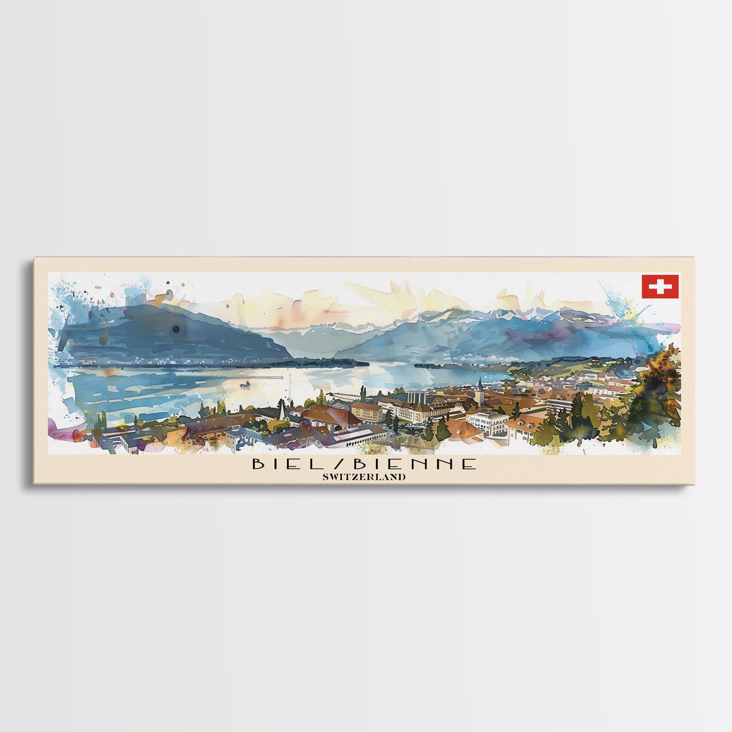 Biel Switzerland Wall Art, Panoramic Travel Poster, Panoramic Framed Canvas Print, City Wall Art, Wall Hanging Home Decor, Travel Art