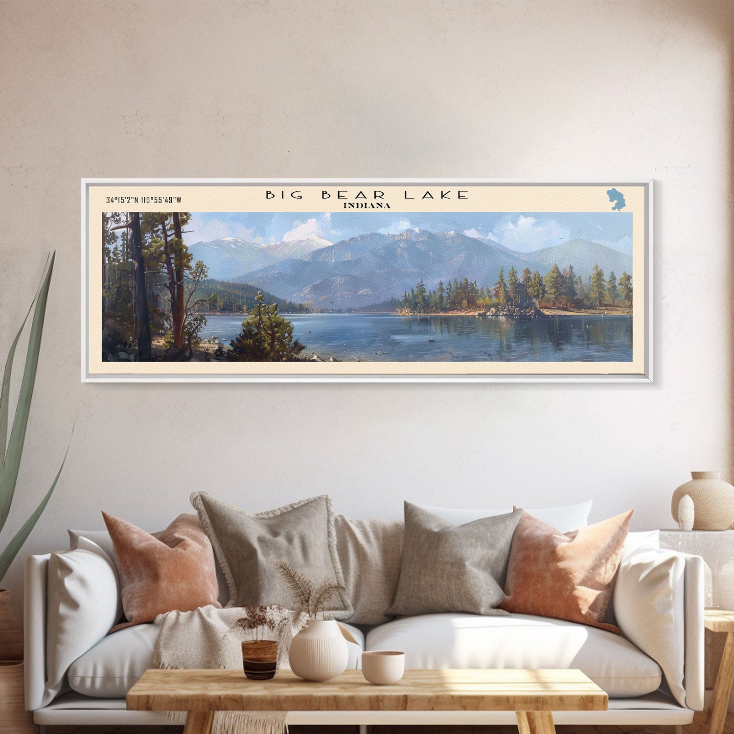 Big Bear Lake California Panoramic Framed Canvas Print, Lake House Decor, Scenic View, Travel Poster, Modern Art, Nature Wall Art