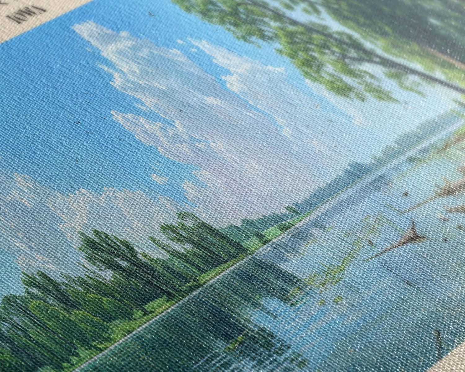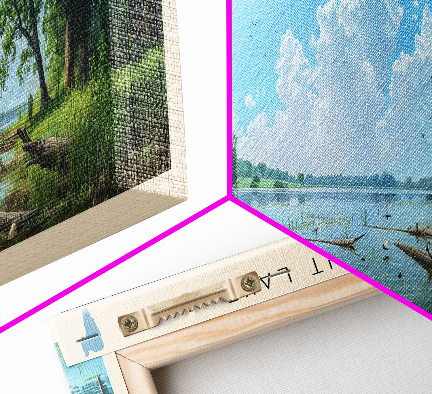 Big Spirit Lake Iowa Framed Canvas Print, Panoramic Lake House Decor, Scenic View, Travel Poster, Rustic Art, Lake Painting
