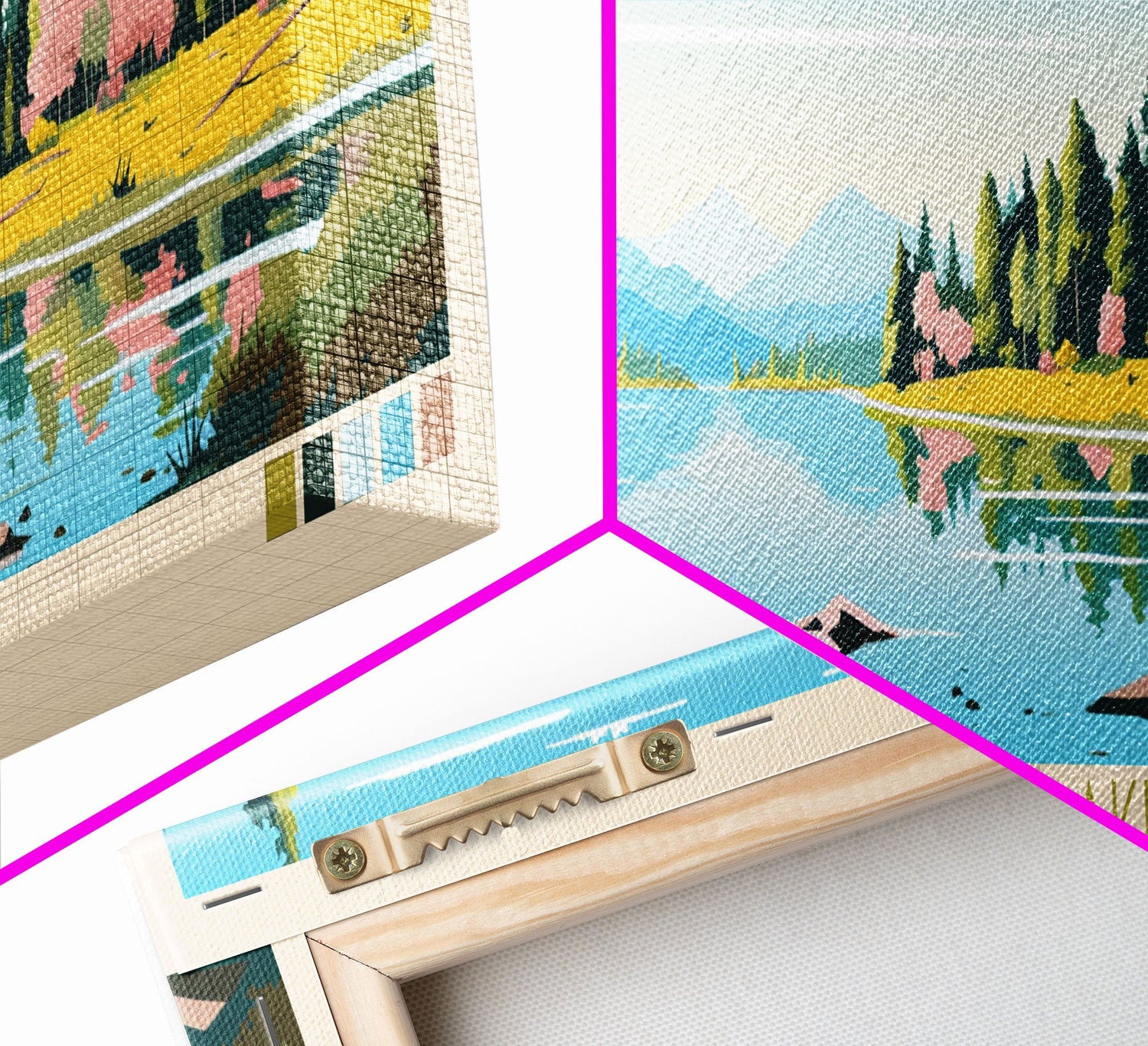 Big Trout Lake Ontario Framed Canvas Print, Panoramic Travel Poster, Midcentury Modern Wall Art, Pop Art, Nature Living Room Art, Lake House Decor