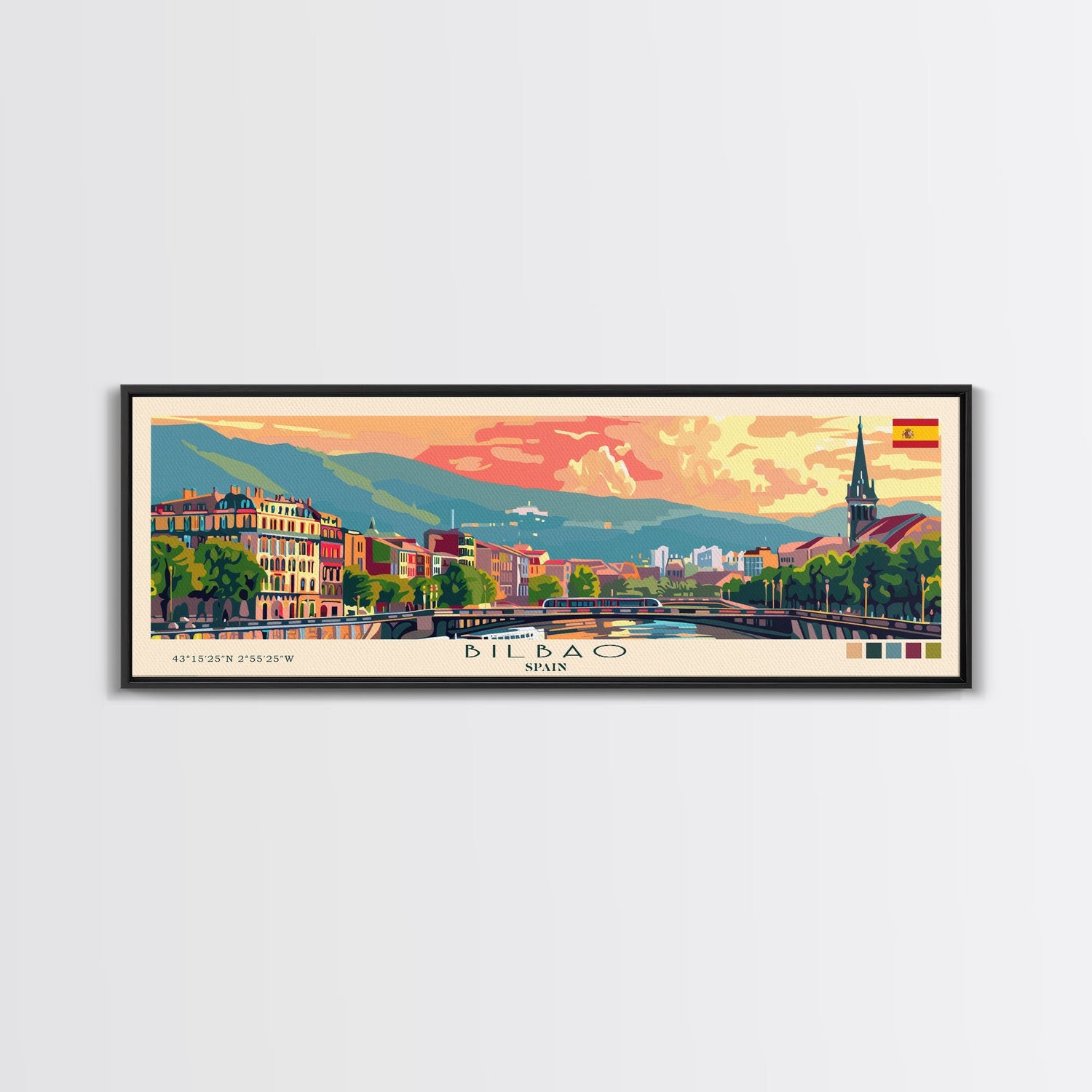 Bilbao Spain Wall Art, Panoramic Travel Poster, Panoramic Framed Canvas Print, City Wall Art, Wall Hanging Home Decor, Travel Art