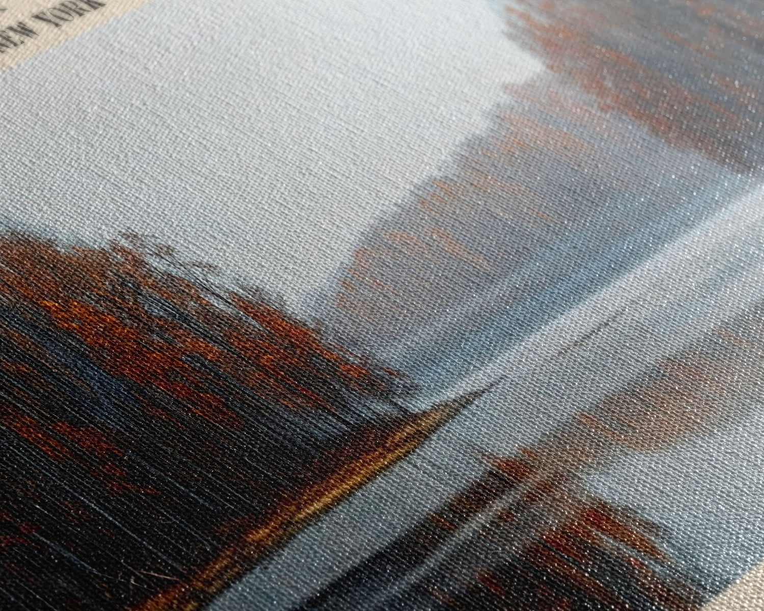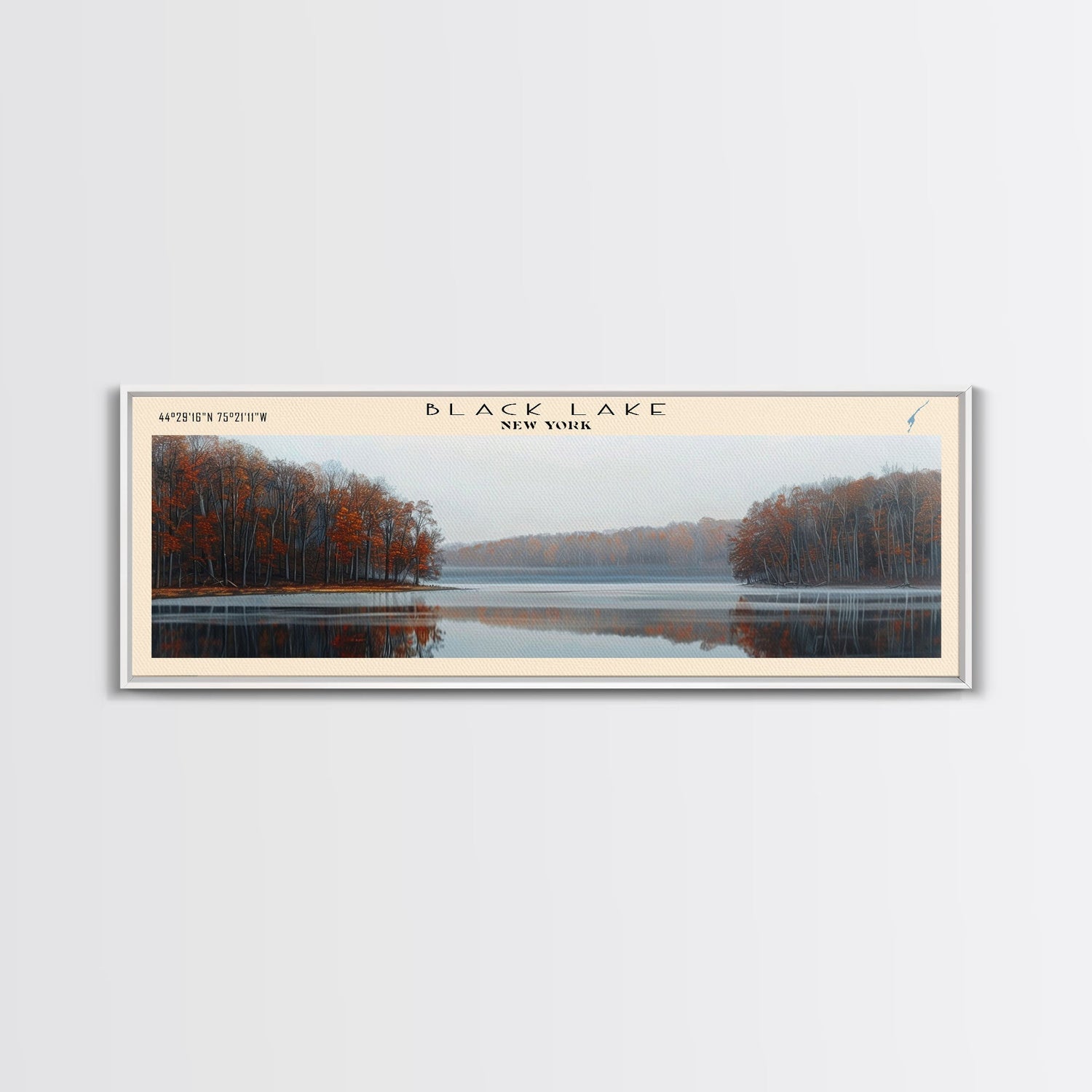 Black Lake New York Framed Canvas Print, Lake House Decor, Panoramic Scenic View, Travel Poster, Modern Art, Lake Painting