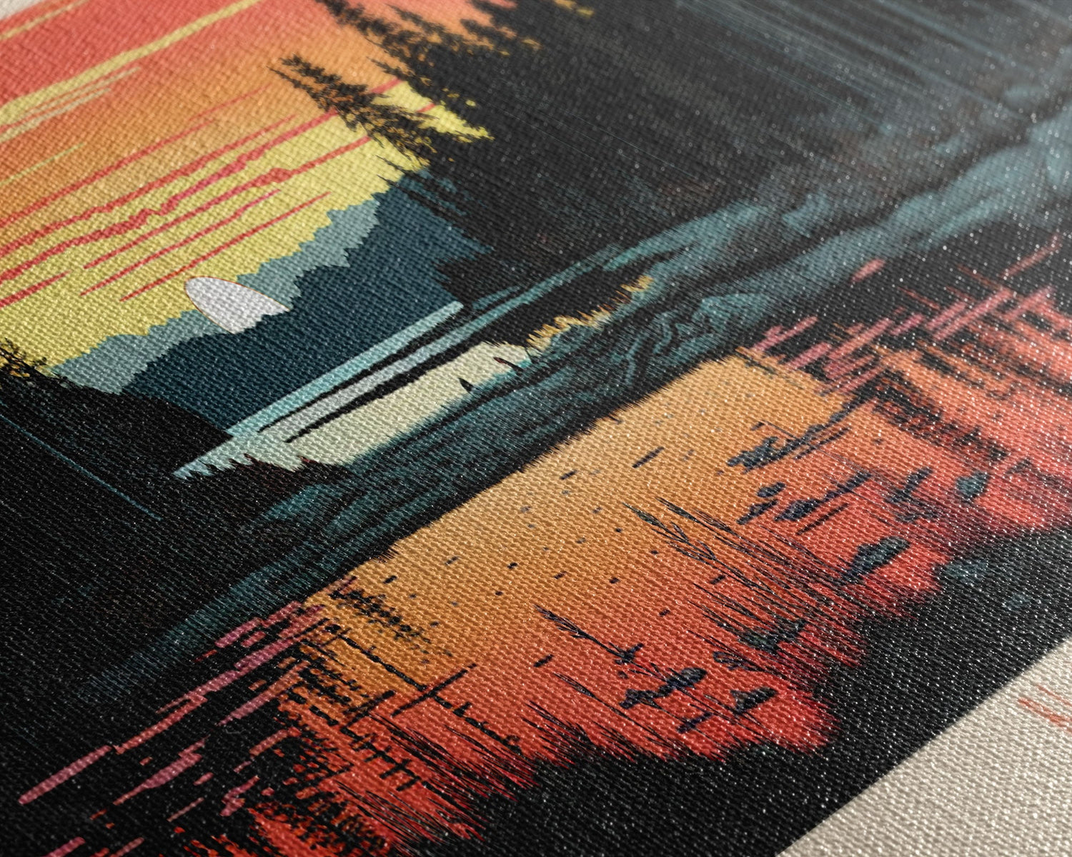 Black Lake New York Framed Canvas Print, Panoramic Wall Art, Midcentury Modern, Pop Art, Travel Poster, Scenic Living Room Art, Lake House Decor