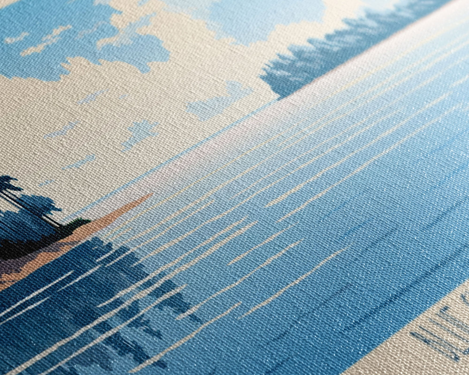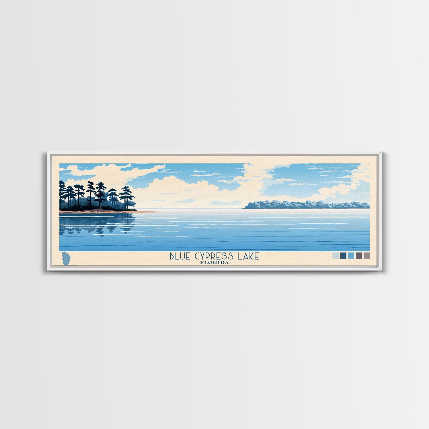 Blue Cypress Lake Florida Framed Canvas Print, Panoramic Wall Art, Midcentury Modern, Pop Art, Travel Poster, Scenic Living Room Art, Lake House Decor