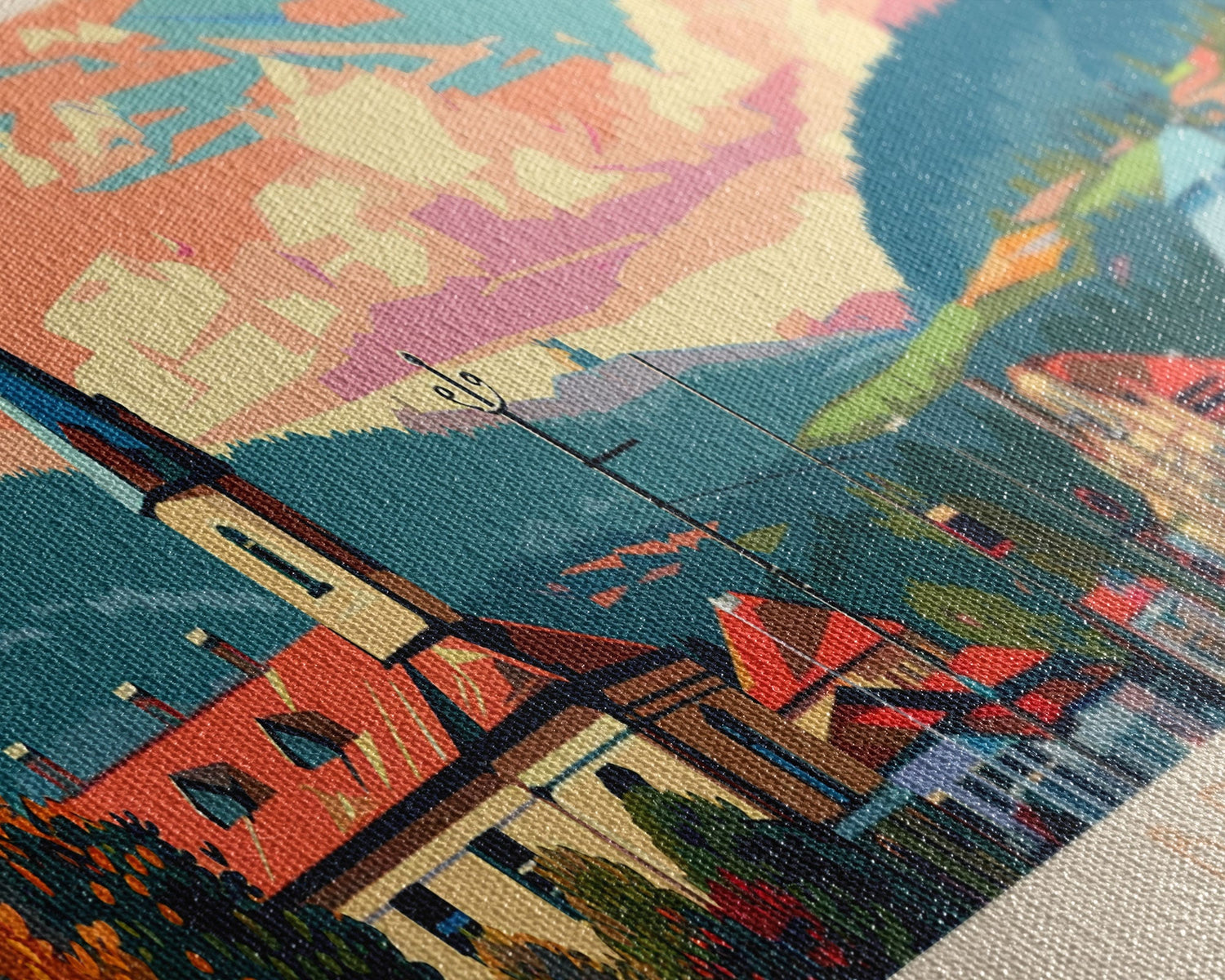 Most of our canvases are made in the USA, with the exception of canvases ordered with the light oak unstained frames, and any large canvases (24x48, 30x60, 16x48 and 20x60) ordered WITH a frame. These are temporarily made in and shipped from Europe, while we try to find a more consistent supplier in the USA.