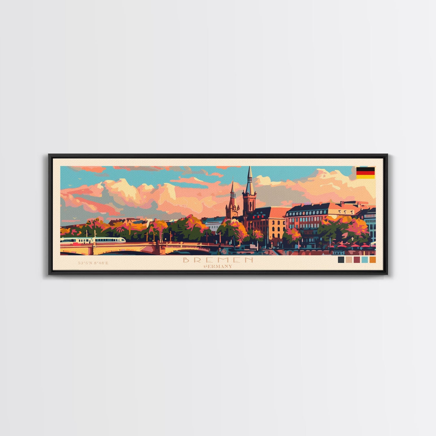Bremen Germany Wall Art, Panoramic Travel Poster, Panoramic Framed Canvas Print, City Wall Art, Wall Hanging Home Decor, Travel Art