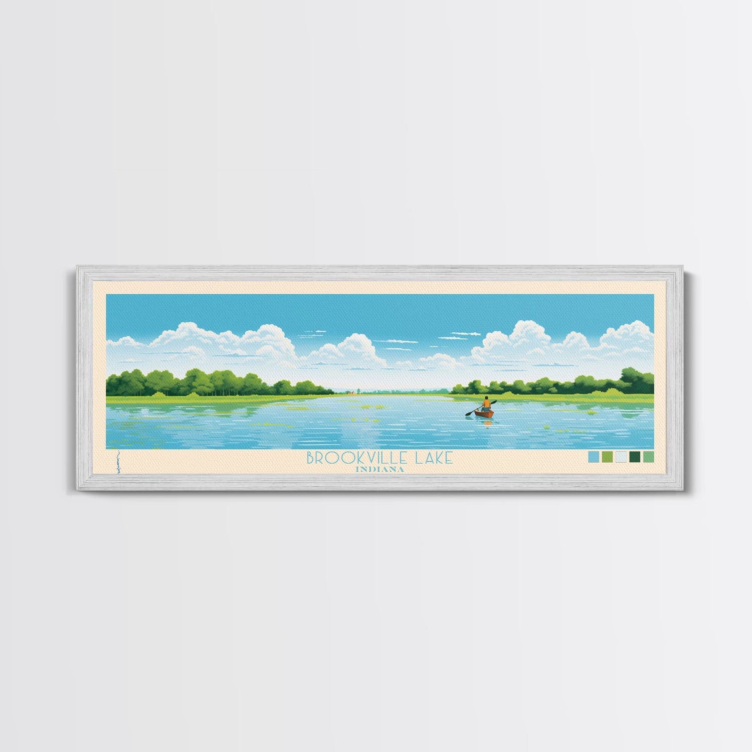 Brookville Lake Indiana Framed Canvas Print, Midcentury Modern Panoramic Wall Art, Living Room Decor, Pop Art, Travel Poster Art, Nature Painting