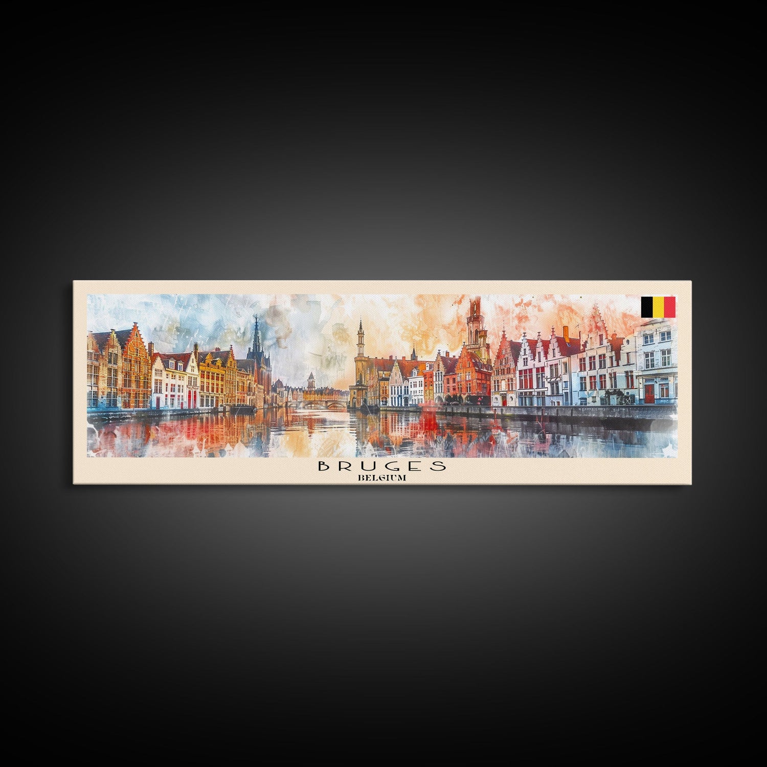 Bruges Belgium Travel Art, City Art, Framed Canvas Print or Metal Wall Art, Europe Travel Poster, Panoramic Wall Art, Extra Wide Wall Art - 10x30 Inches / Gallery Wrap Canvas - Ready To Hang is backordered and will ship as soon as it is back in stock.