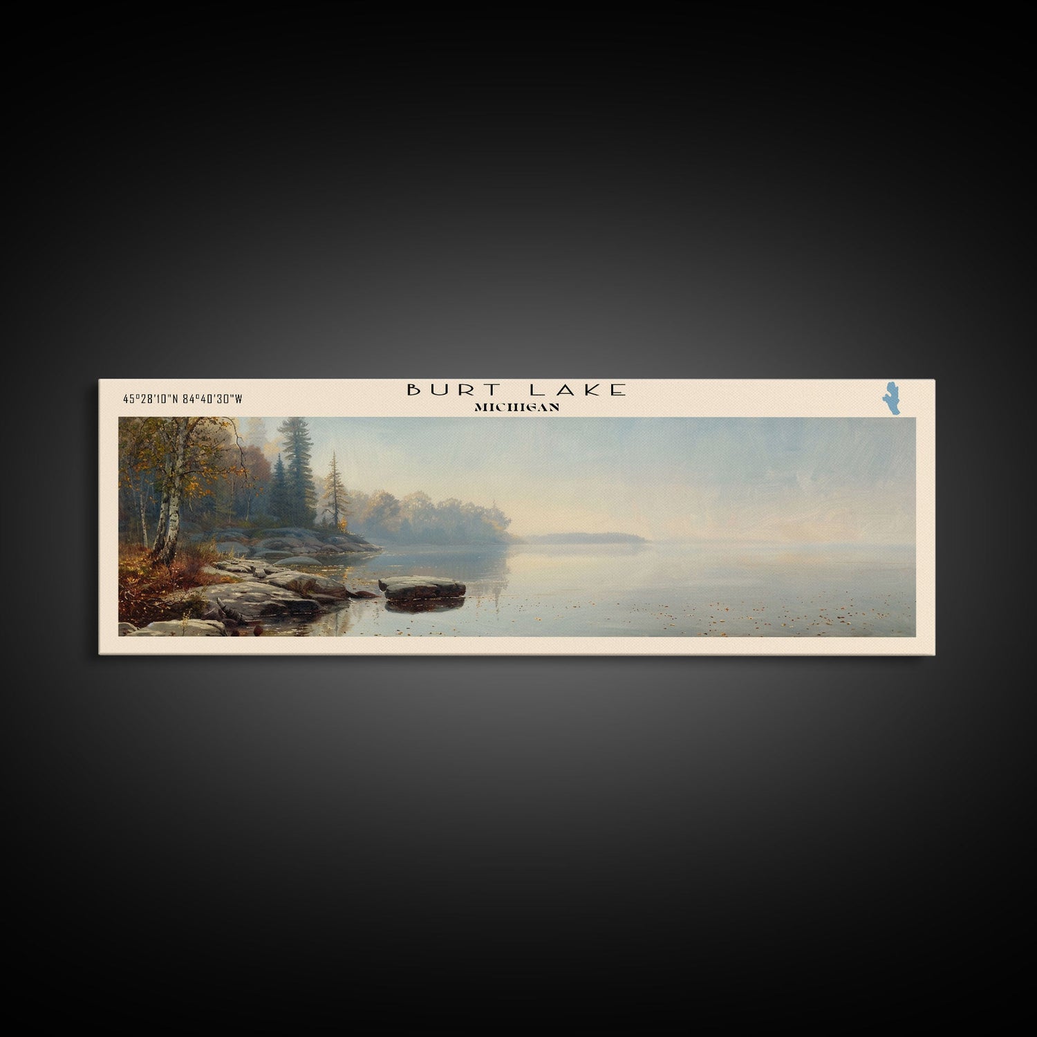 Burt Lake Michigan Framed Canvas Print, Panoramic Lake House Decor, Wall Art, Travel Poster, Rustic Lake Painting, Nature Art