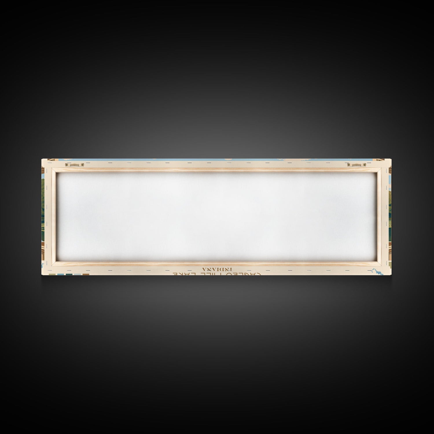 Cagles Mill Lake Indiana Framed Canvas Print, Midcentury Modern Panoramic Wall Art, Living Room Decor, Pop Art, Travel Poster Art, Scenic Nature Painting - 10x30 Inches / Gallery Wrap Canvas - Ready To Hang is backordered and will ship as soon as it is back in stock.