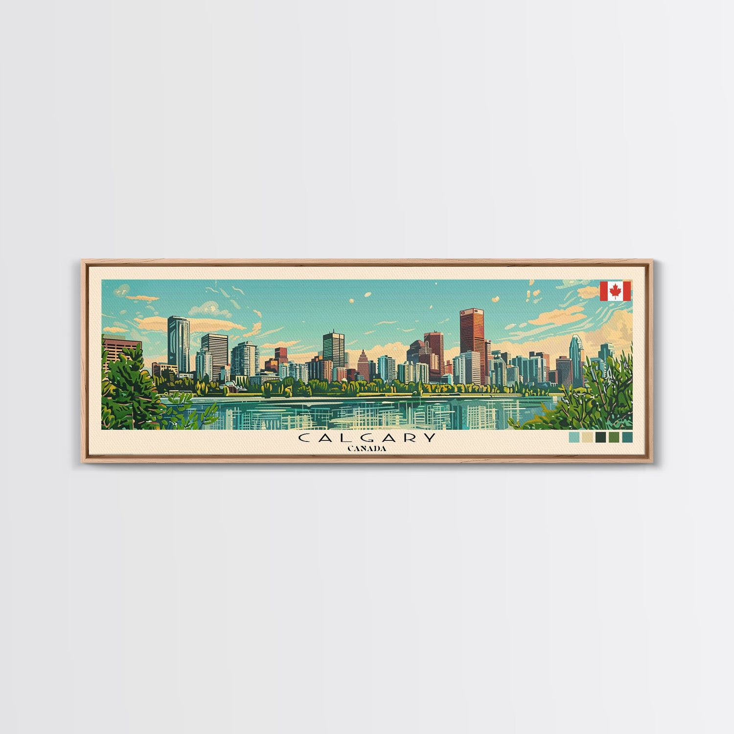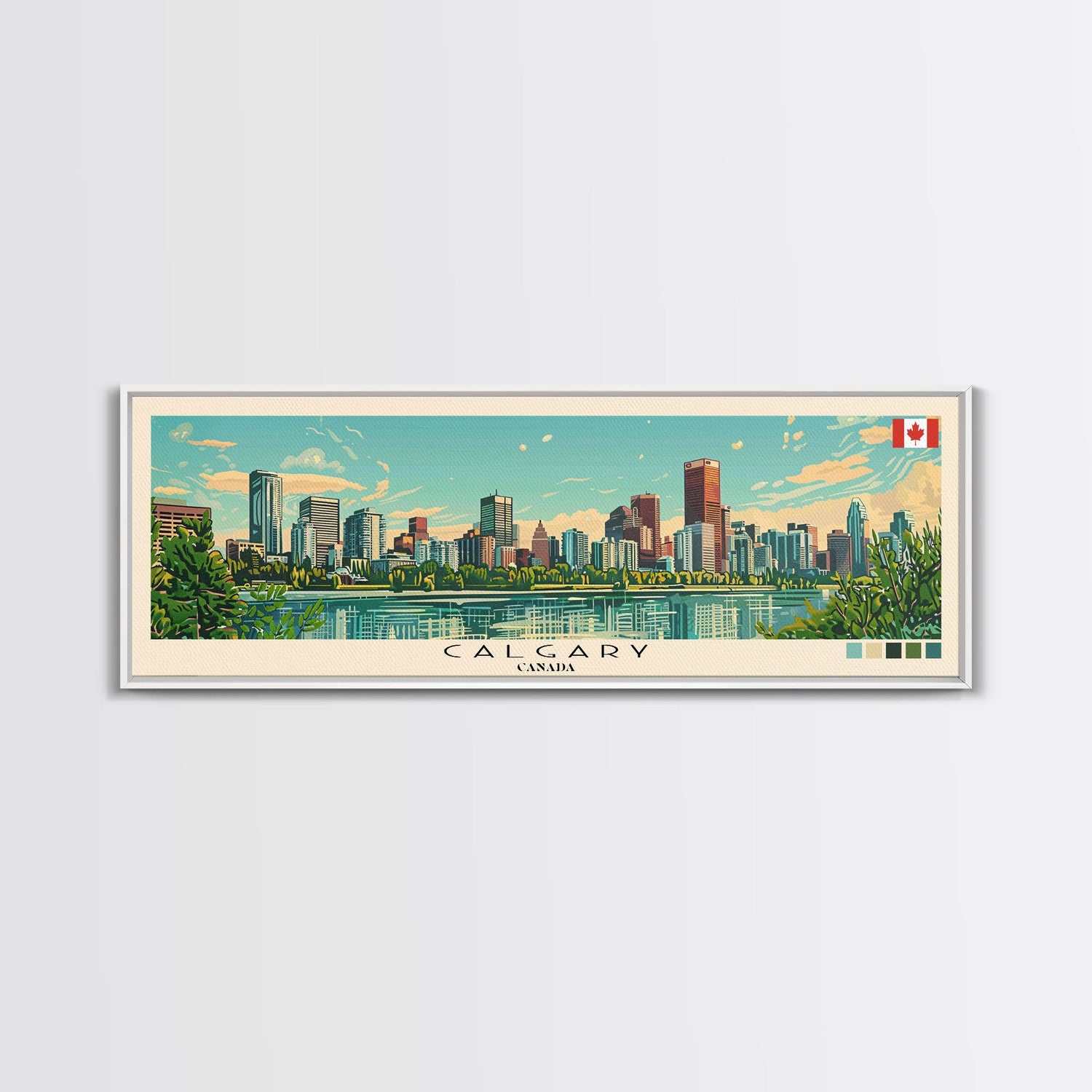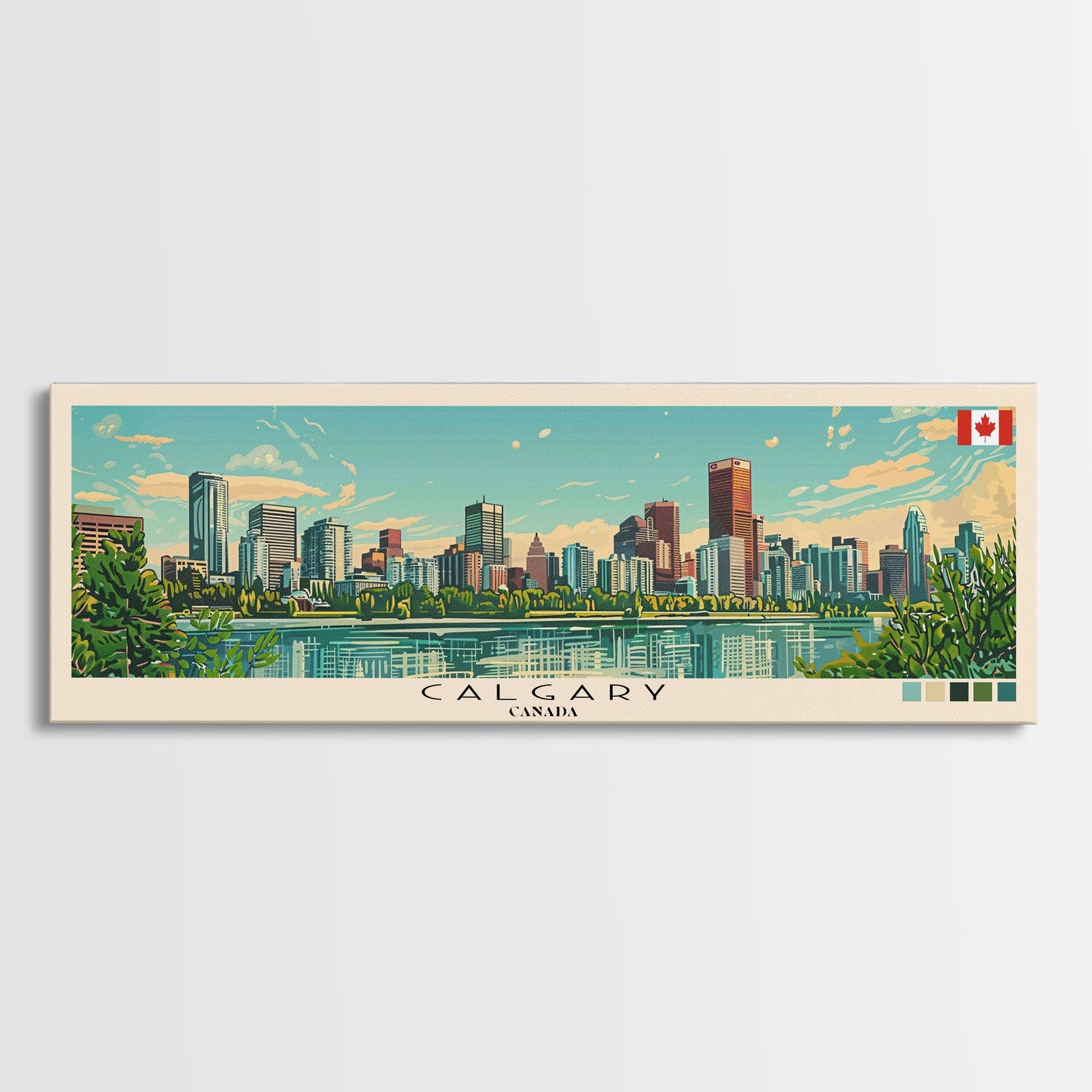 Calgary, Canada Panoramic Canvas Print, Calgary, Canada Painting, Canada Art, Calgary Travel Poster, Travel Art, Guest Room Painting
