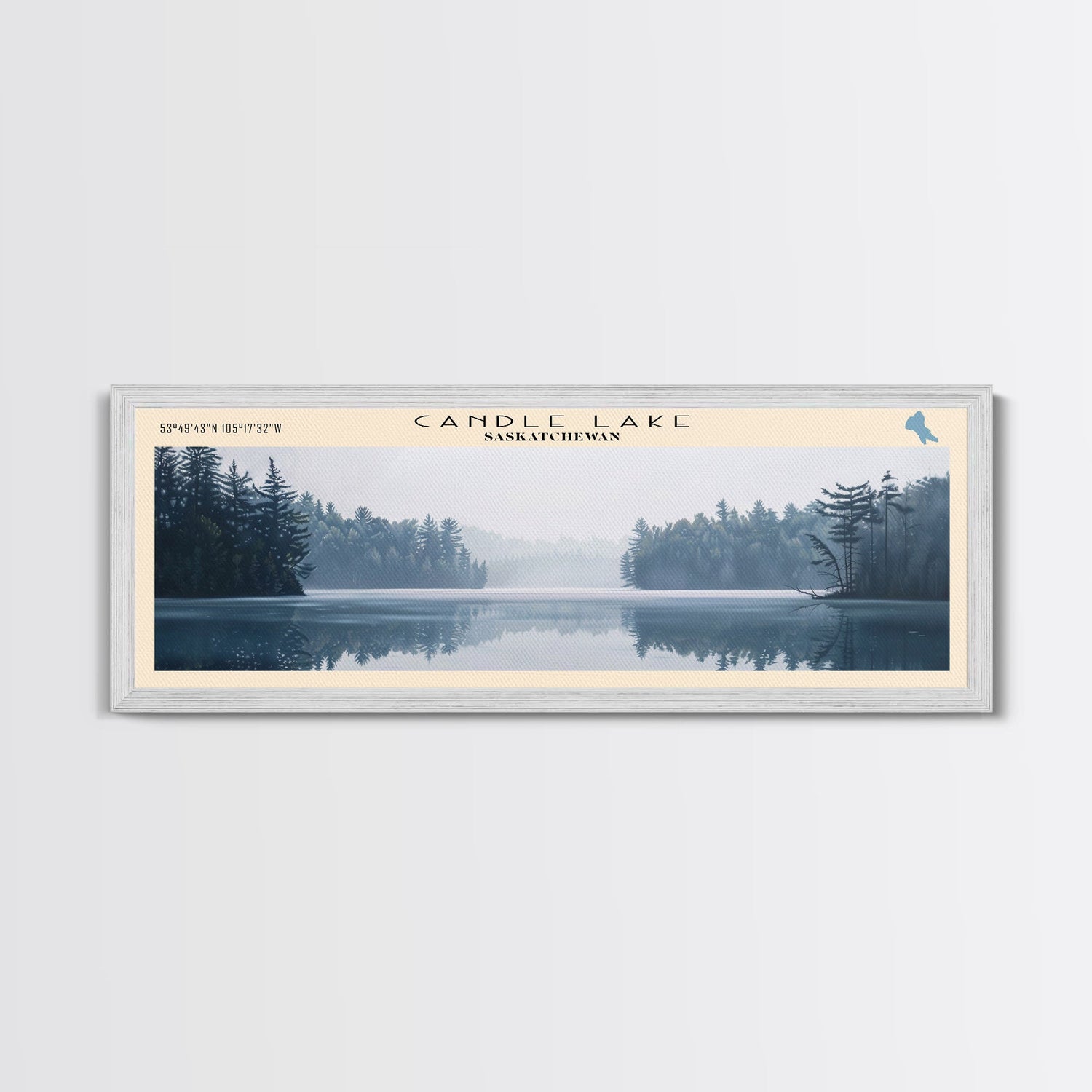 Candle Lake Framed Canvas Print, Panoramic Lake House Decor, Wall Art, Travel Poster, Rustic Lake Painting, Home Decor