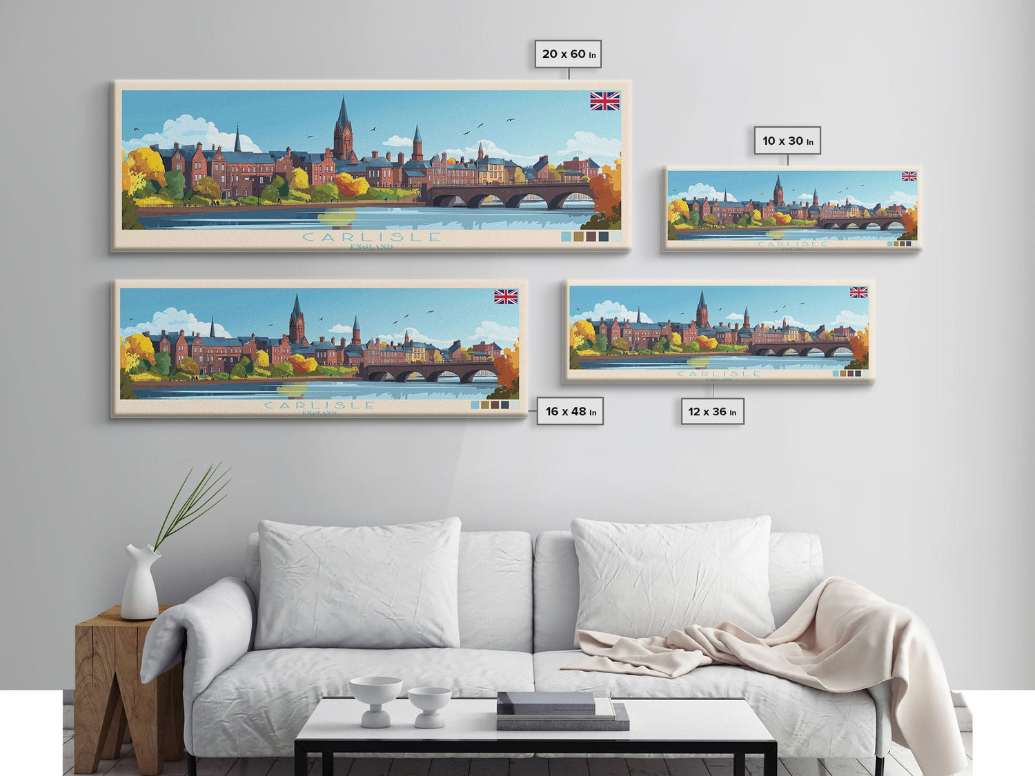 Carlisle, England Travel Poster Panoramic Canvas Print, Carlisle, England Painting, England Art, Carlisle Travel Art, Guest Room Painting