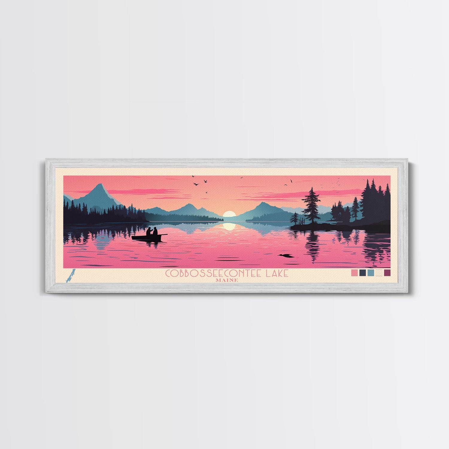 Cobbosseecontee Lake Maine Framed Canvas Print, Midcentury Modern Panoramic Wall Art, Living Room Decor, Pop Art, Travel Poster Art, Scenic Nature Painting, Lake House Decor