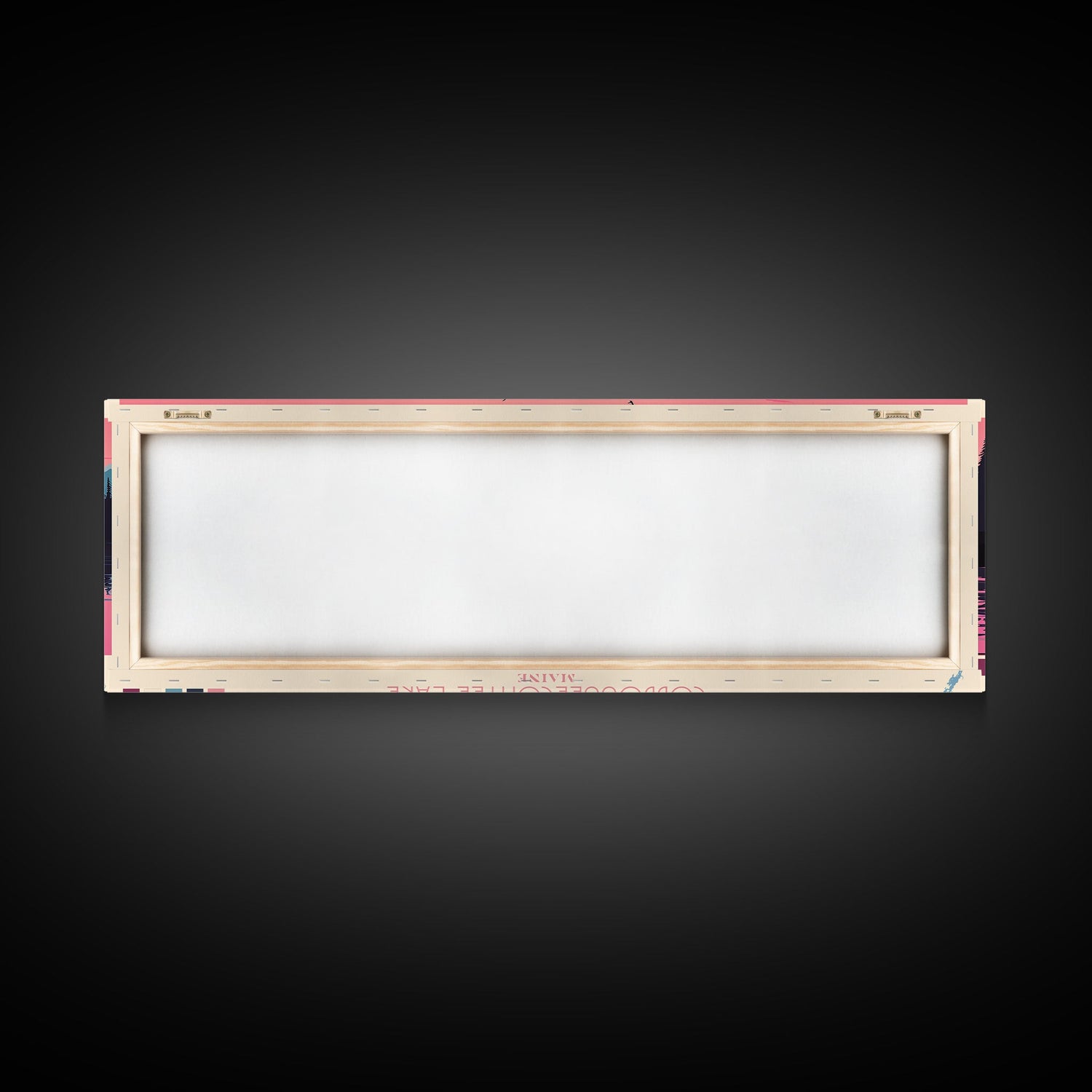 Cobbosseecontee Lake Maine Framed Canvas Print, Midcentury Modern Panoramic Wall Art, Living Room Decor, Pop Art, Travel Poster Art, Scenic Nature Painting, Lake House Decor - 10x30 Inches / Gallery Wrap Canvas - Ready To Hang is backordered and will ship as soon as it is back in stock.