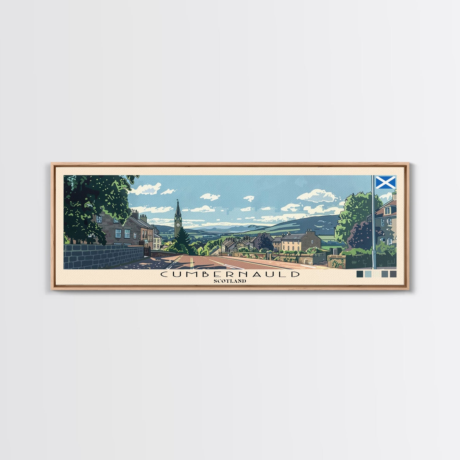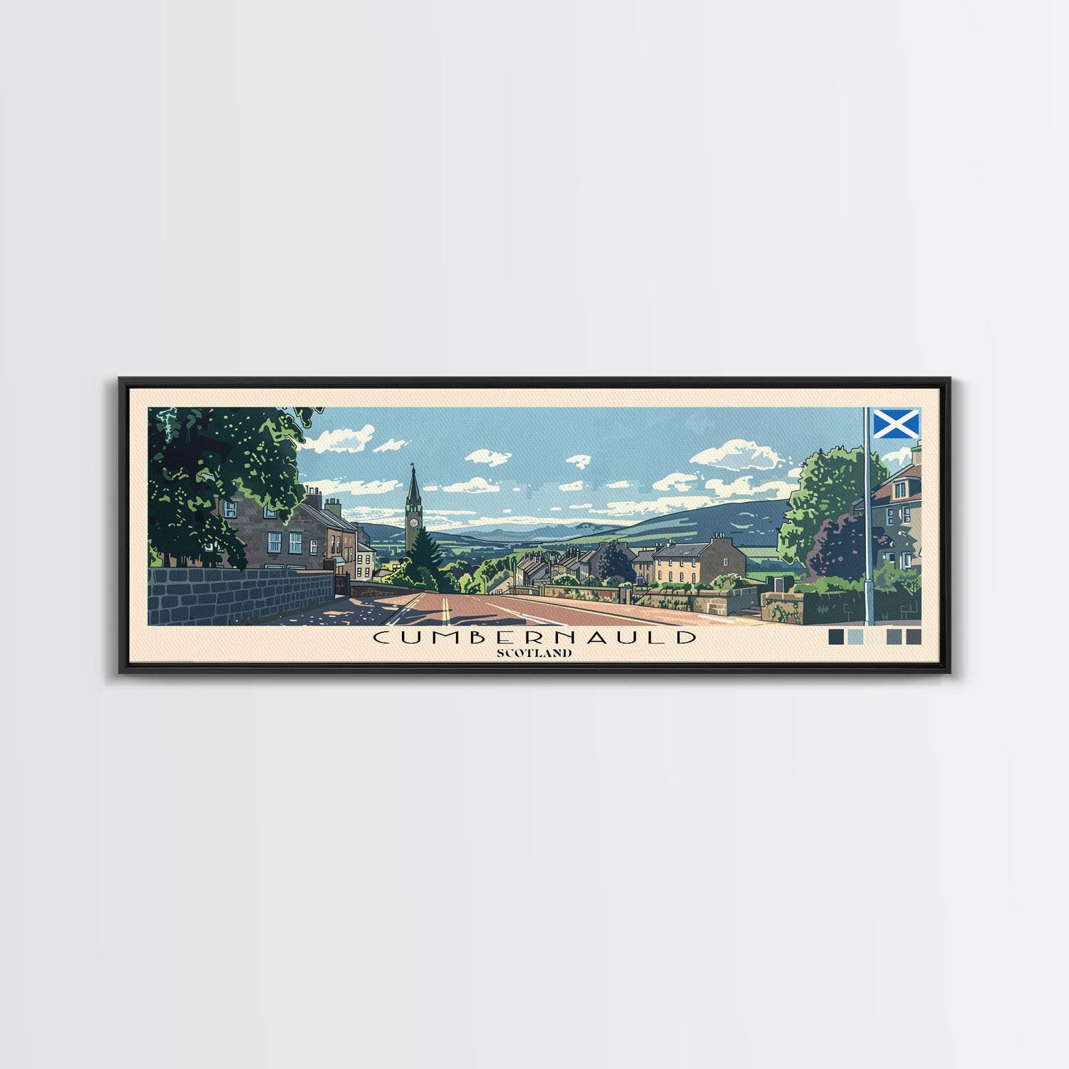 Cumbernauld, Scotland Panoramic Canvas Print, Cumbernauld, Scotland Painting, Scotland Art, Cumbernauld Travel Poster, Travel Art, Housewarming Gift