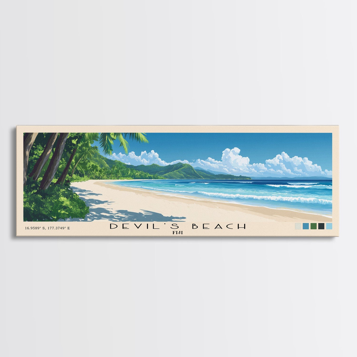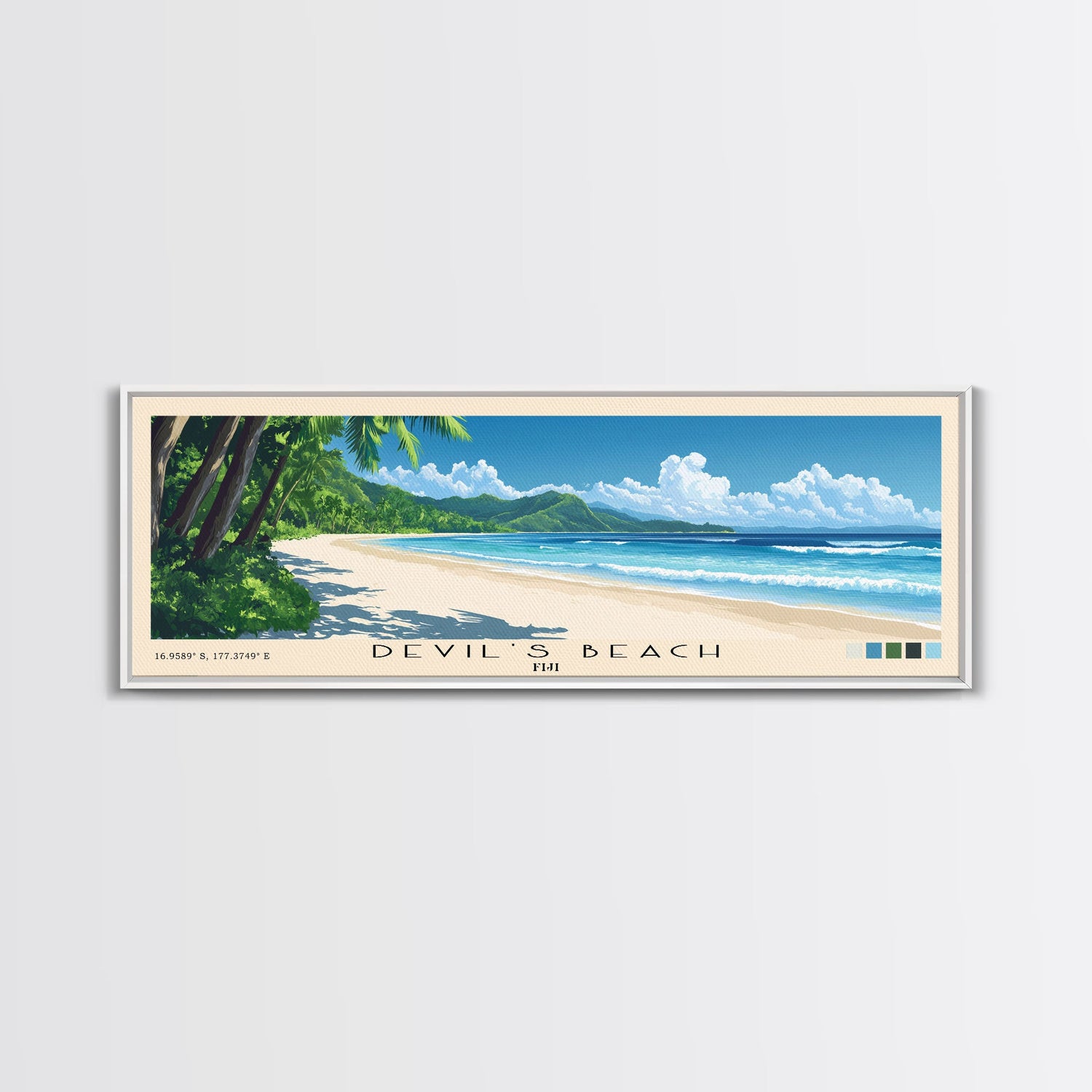 Devil’s Beach, Fiji Panoramic Print, Vacation Gift, Fiji Wall Art, Beach Painting, Beach Decor, Beach Or Lakehouse Art