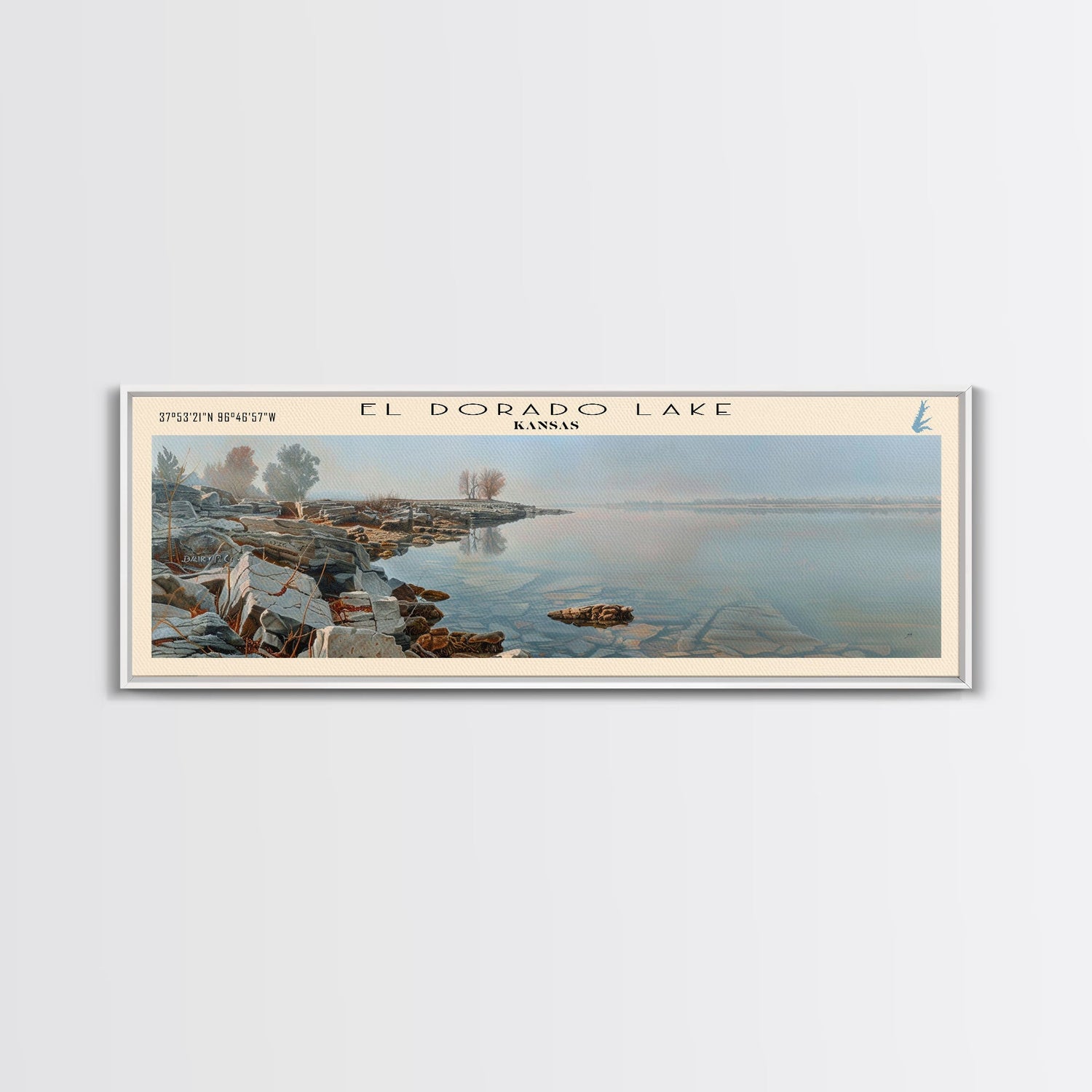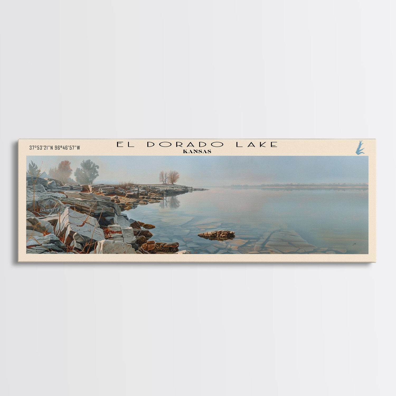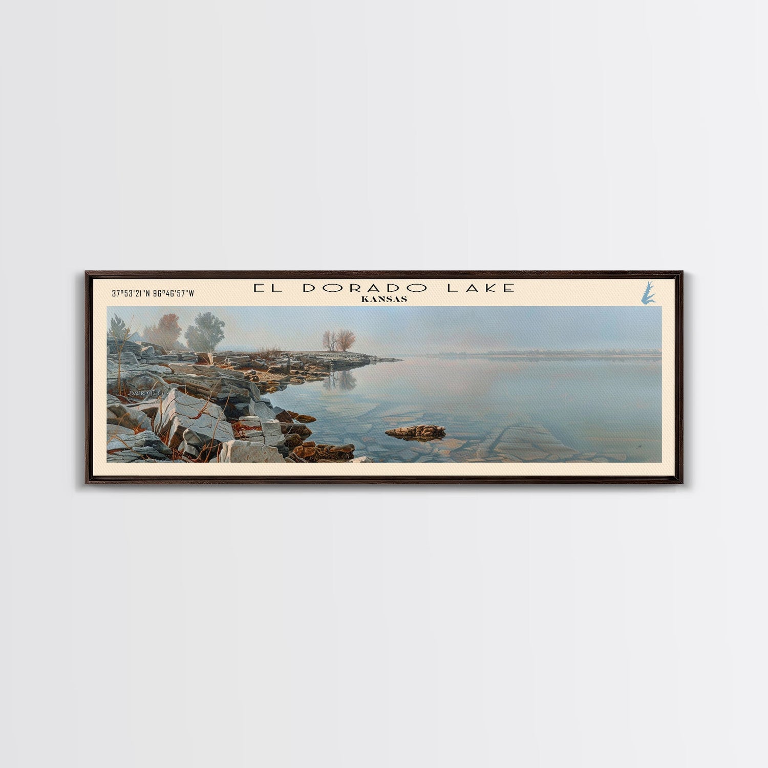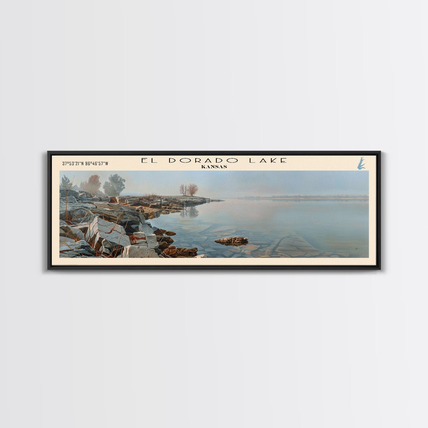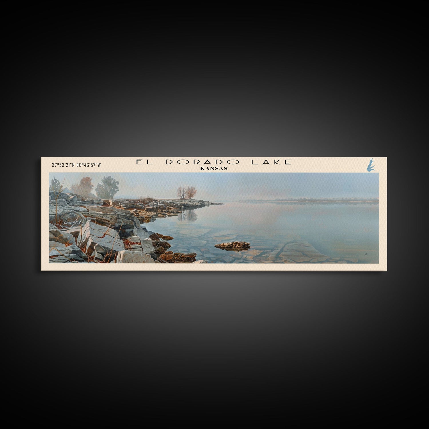 El Dorado Lake Kansas Framed Canvas Print, Lake House Decor, Panoramic Wall Art, Travel Poster, Rustic Lake Painting, Nature Art