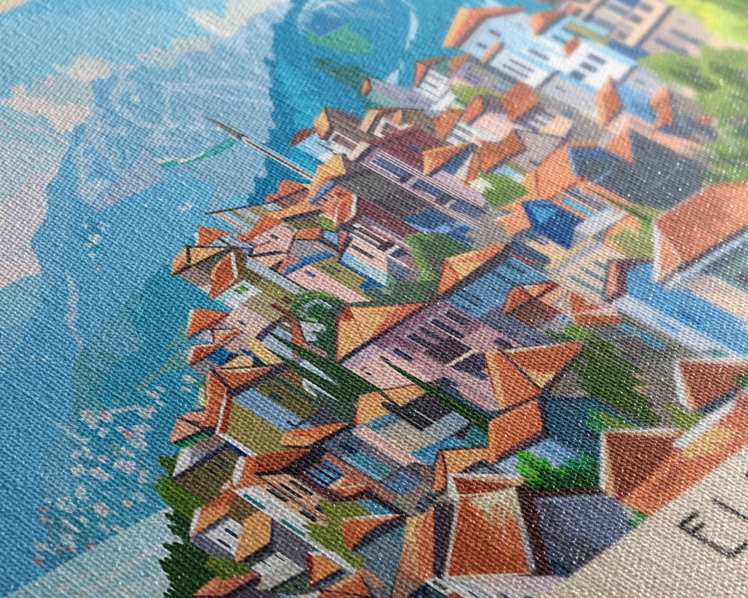 Most of our canvases are made in the USA, with the exception of canvases ordered with the light oak unstained frames, and any large canvases (24x48, 30x60, 16x48 and 20x60) ordered WITH a frame. These are temporarily made in and shipped from Europe, while we try to find a more consistent supplier in the USA.