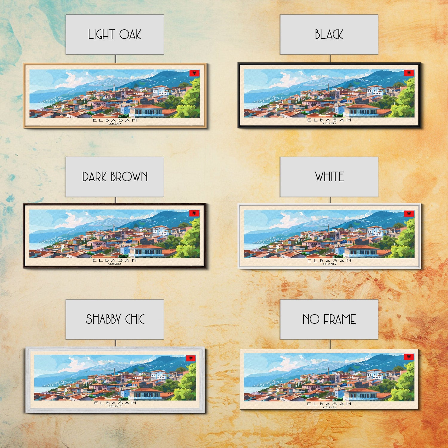 Elbasan Albania Travel Print Wall Art, Panoramic City Art, Travel Art, Wall Decor, Vacation Gift, Framed Canvas Print Or Metal Art