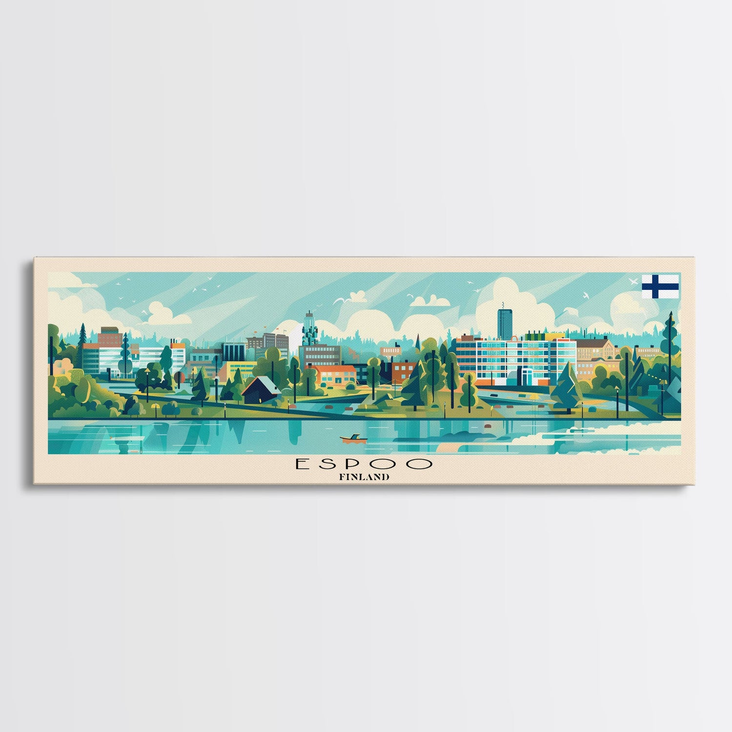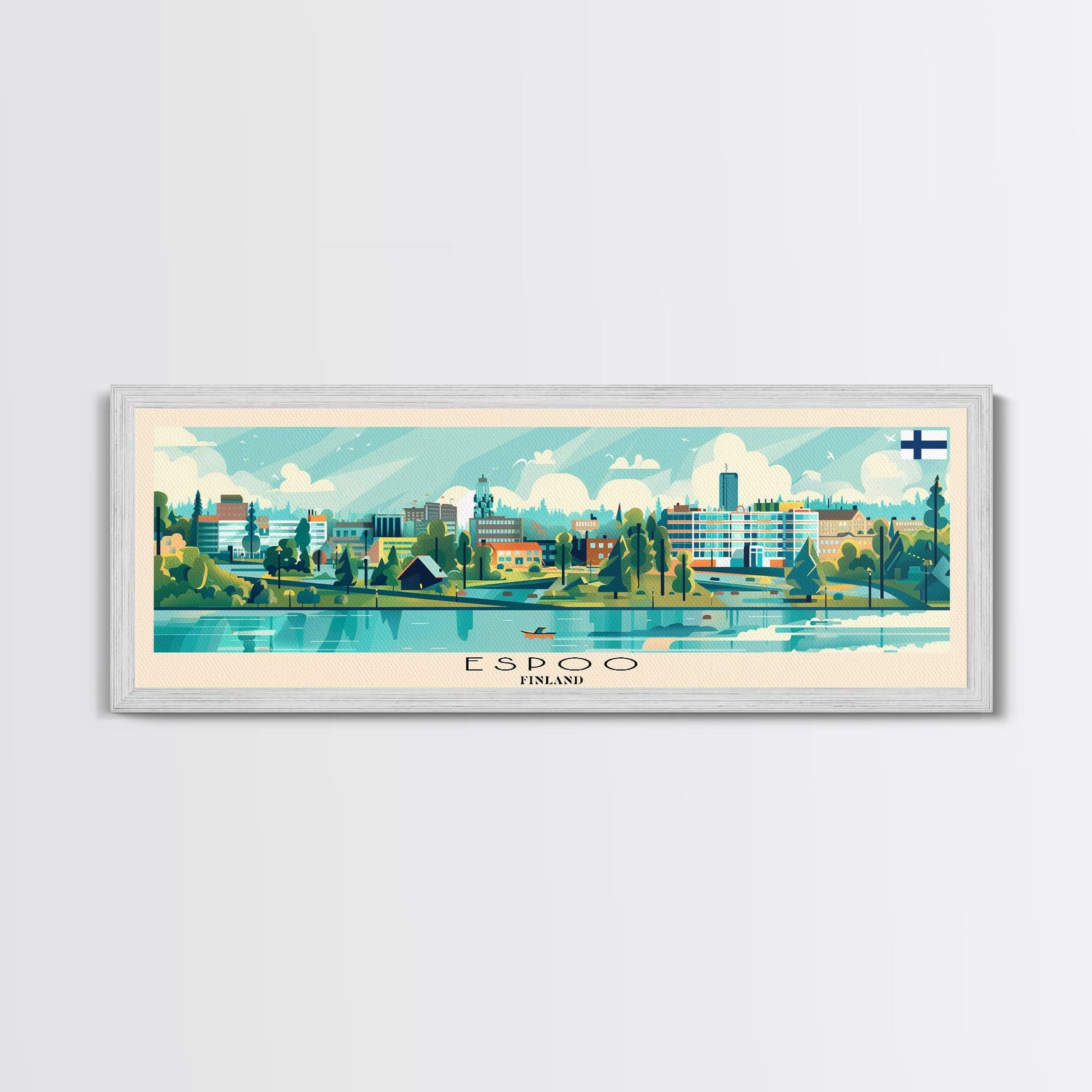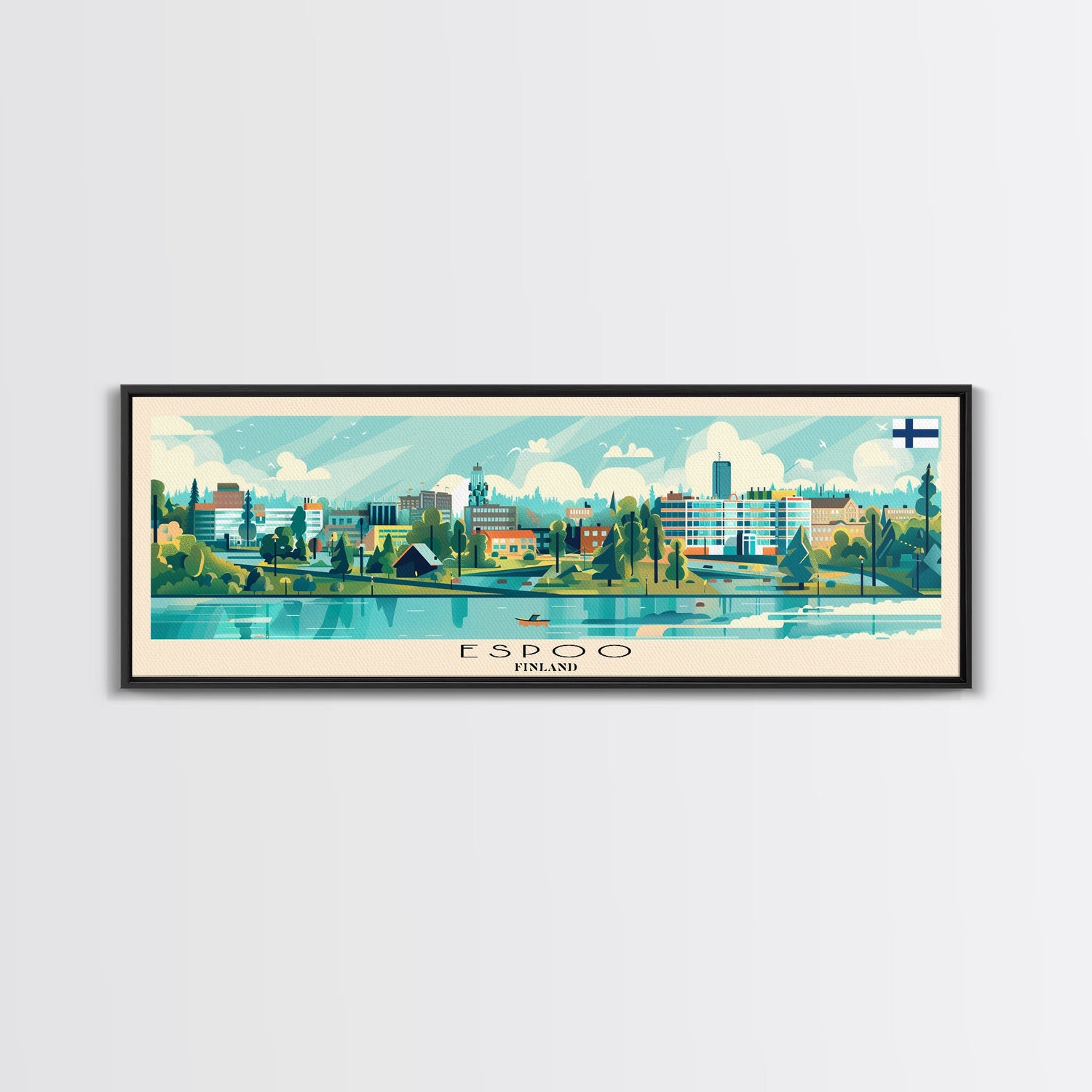 Espoo Finland Wall Art, Panoramic Travel Poster, Panoramic Framed Canvas Print, City Wall Art, Wall Hanging Home Decor, Travel Art