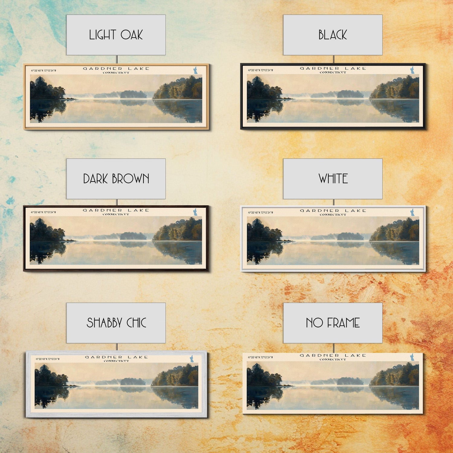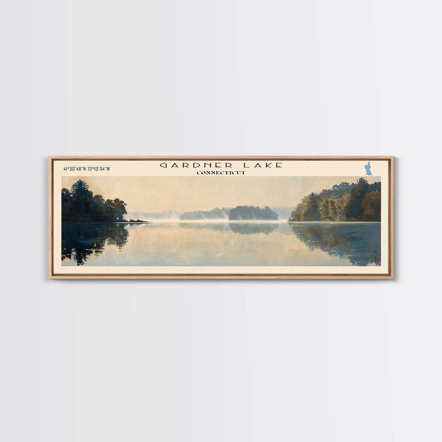 Gardner Lake Connecticut Framed Canvas Print, Lake House Art, Panoramic Wall Art, Travel Poster, Tranquil Lake Painting, Home Decor - 10x30 Inches / Gallery Wrap Canvas - Ready To Hang is backordered and will ship as soon as it is back in stock.
