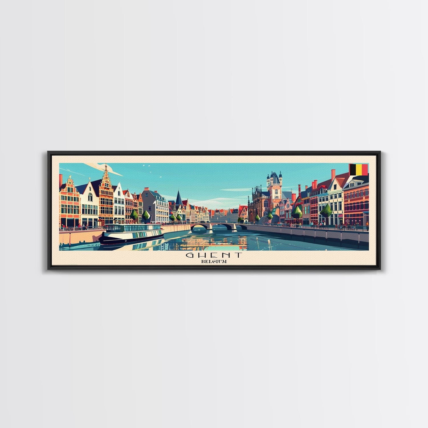 Ghent Belgium Wall Art, Panoramic Travel Poster, Panoramic Framed Canvas Print, City Wall Art, Wall Hanging Home Decor, Travel Art