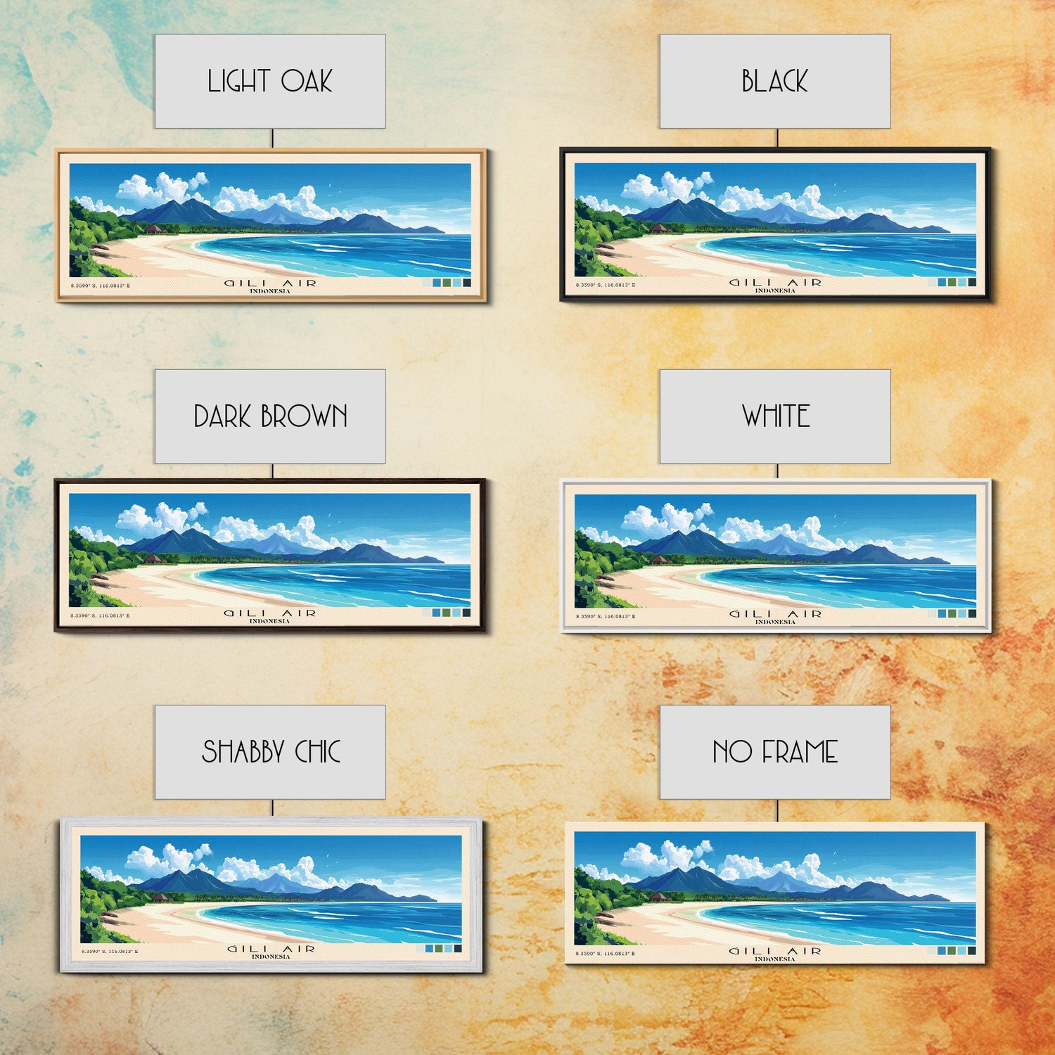 Gili Air, Indonesia Panoramic Beach Print, Vacation Gift, Indonesia Wall Art, Framed Canvas Print, Framed Beach Painting