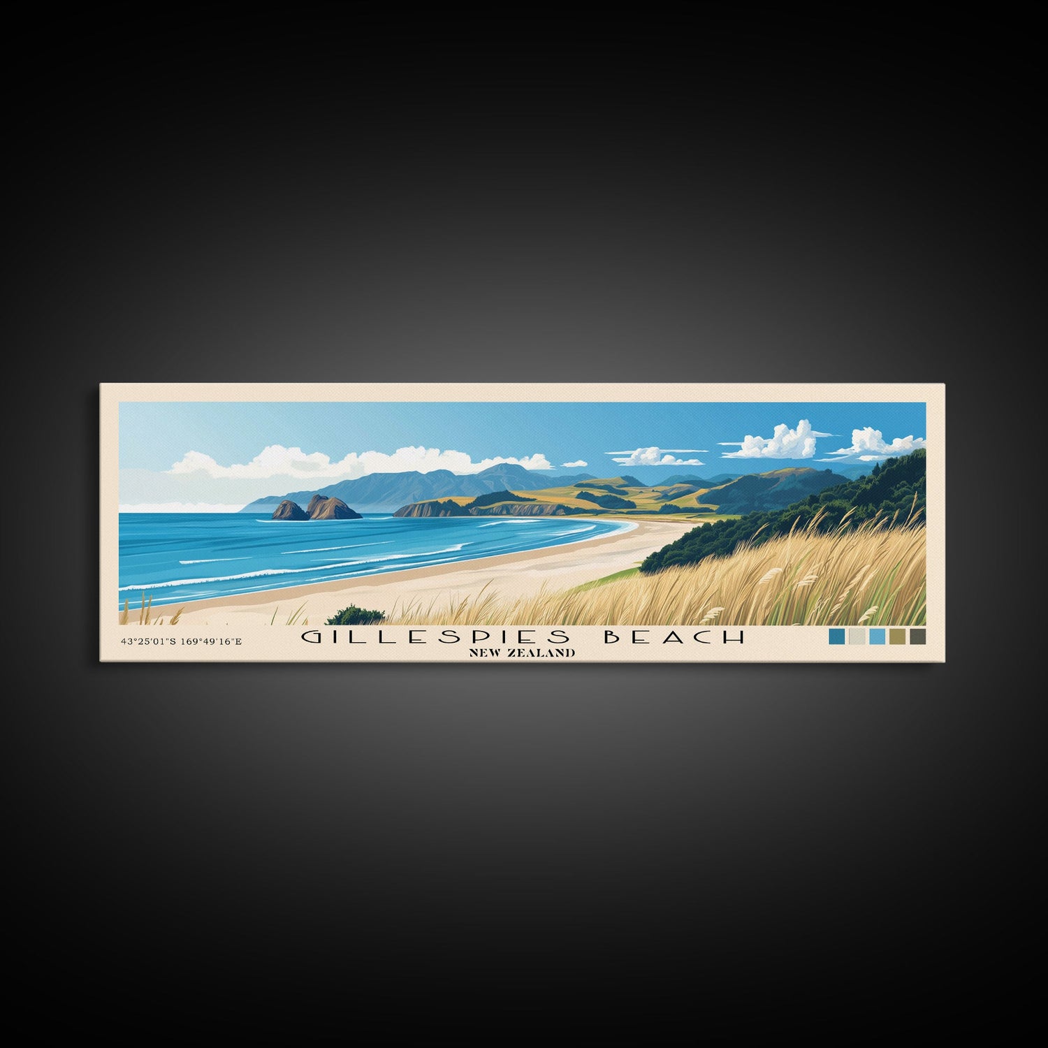 Gillespies Beach, New Zealand Panoramic Beach Print, Vacation Gift, New Zealand Wall Art, Framed Canvas Print, Framed Beach Painting
