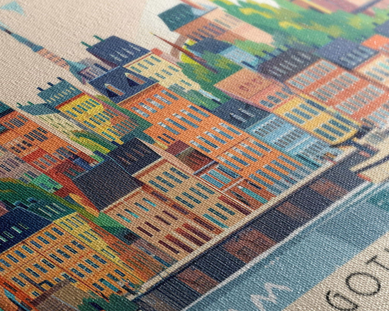 Gothenburg Sweden Travel Art, City Art, Framed Canvas Print or Metal Wall Art, Europe Travel Poster, Panoramic Wall Art, Extra Wide Wall Art
