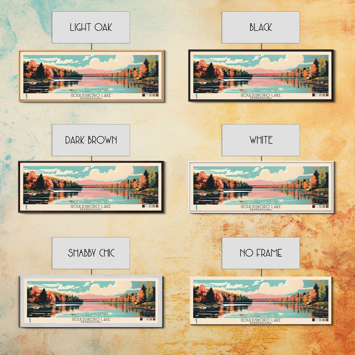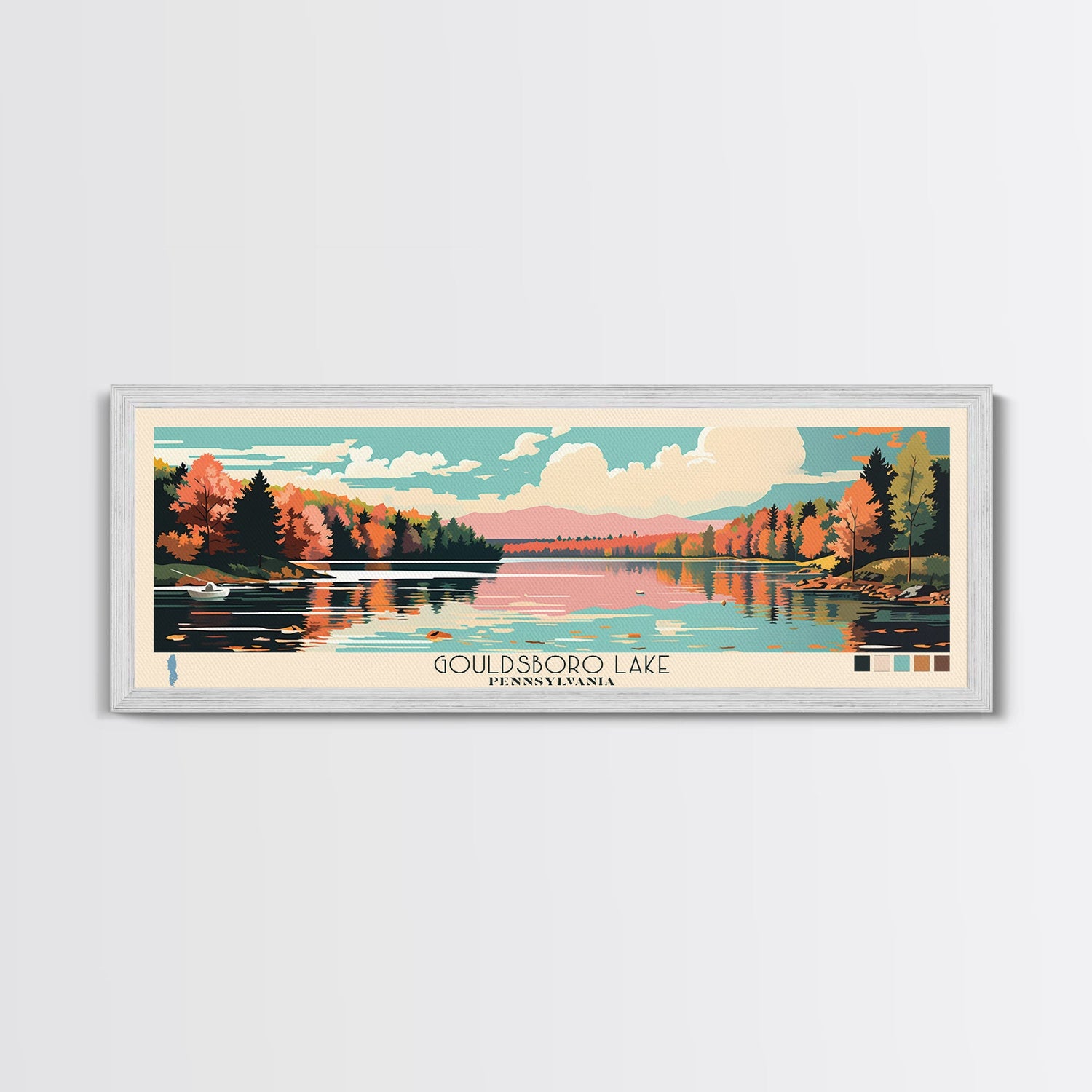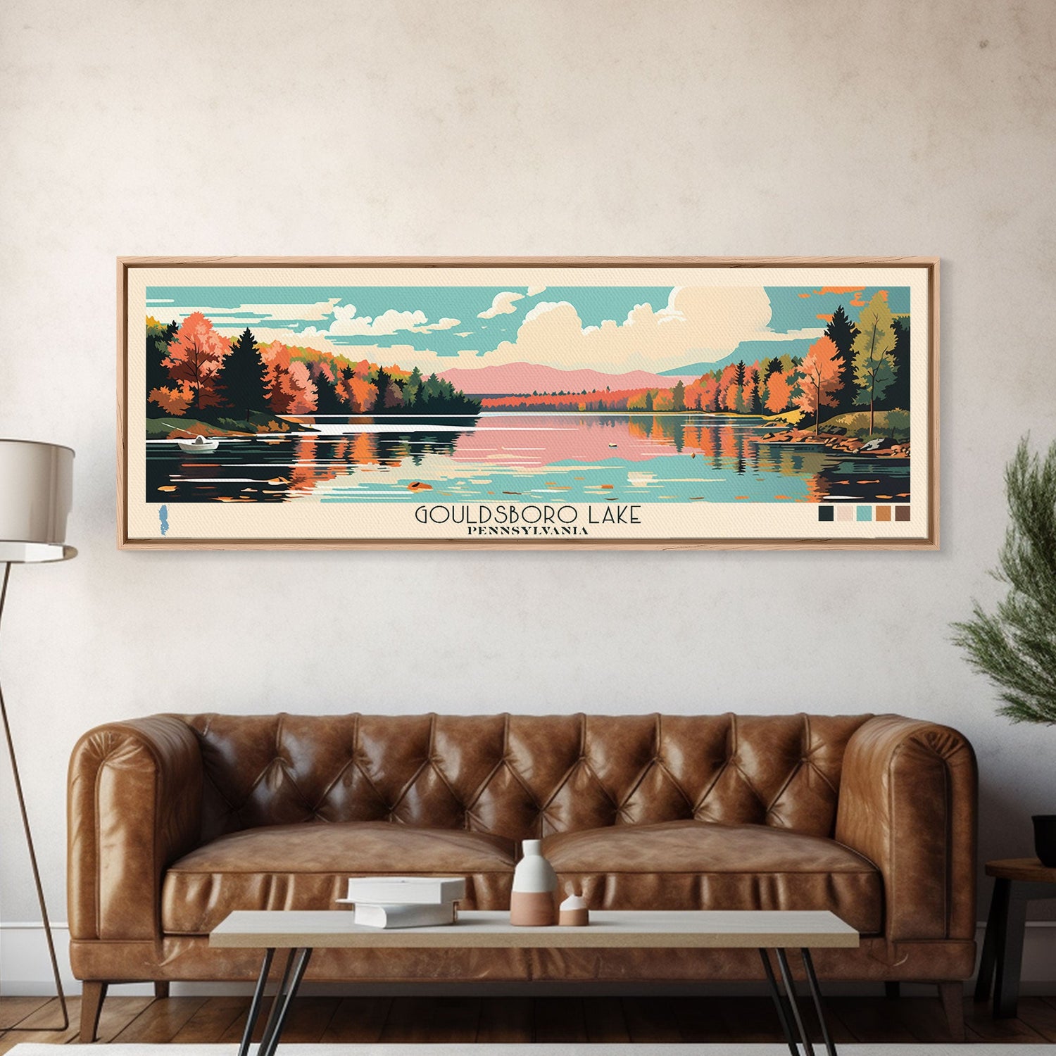 Gouldsboro Lake Pennsylvania Framed Canvas Print, Panoramic Wall Art, Midcentury Modern, Pop Art, Living Room Wall Art, Travel Poster, Nature Painting, Home Decor