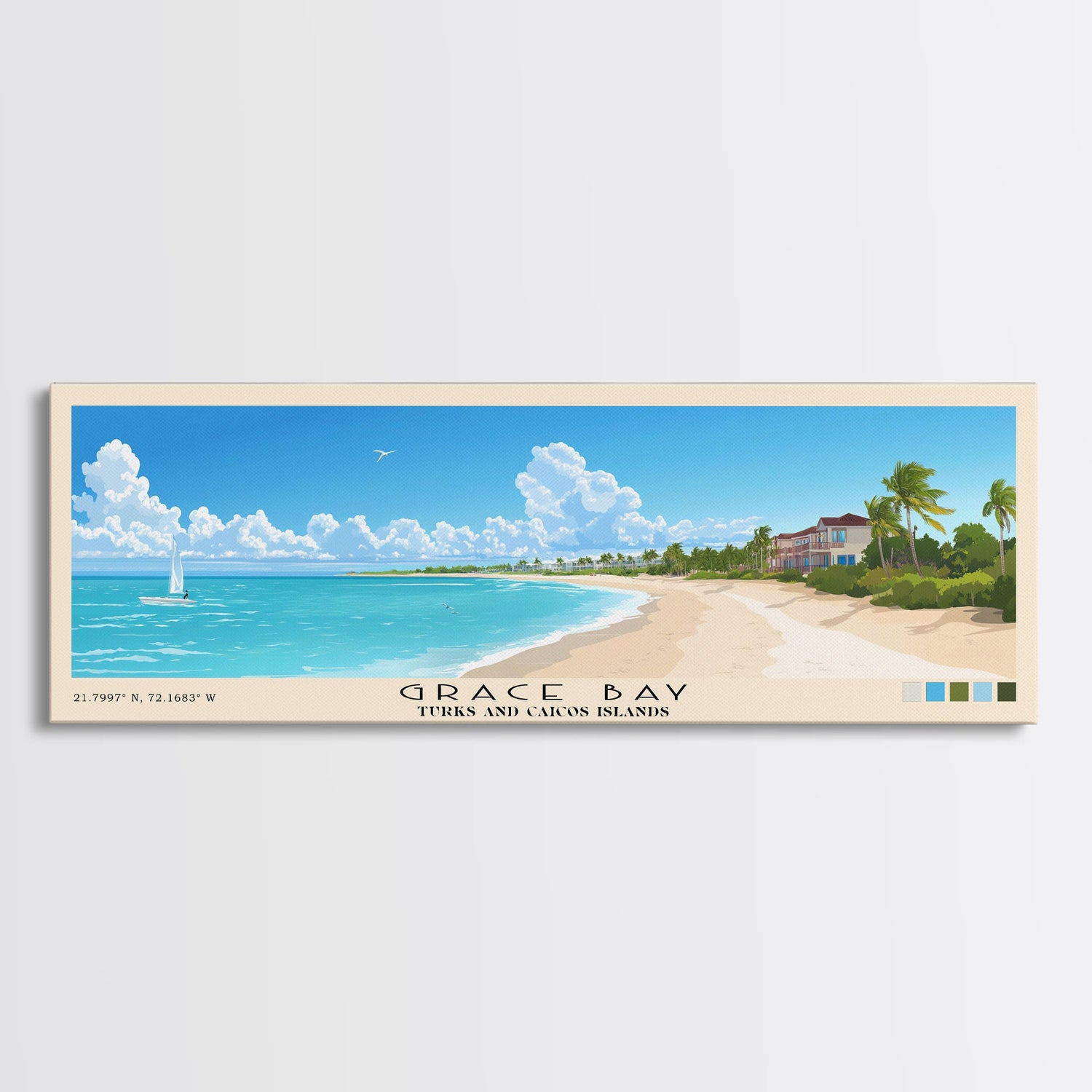 Grace Bay, Turks and Caicos Islands Panoramic Beach Print, Vacation Gift, Turks and Caicos Islands Wall Art, Framed Canvas Print, Framed Beach Painting