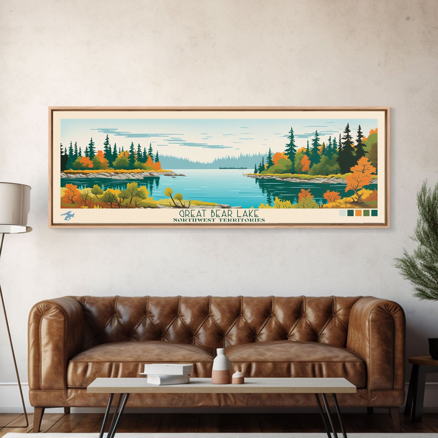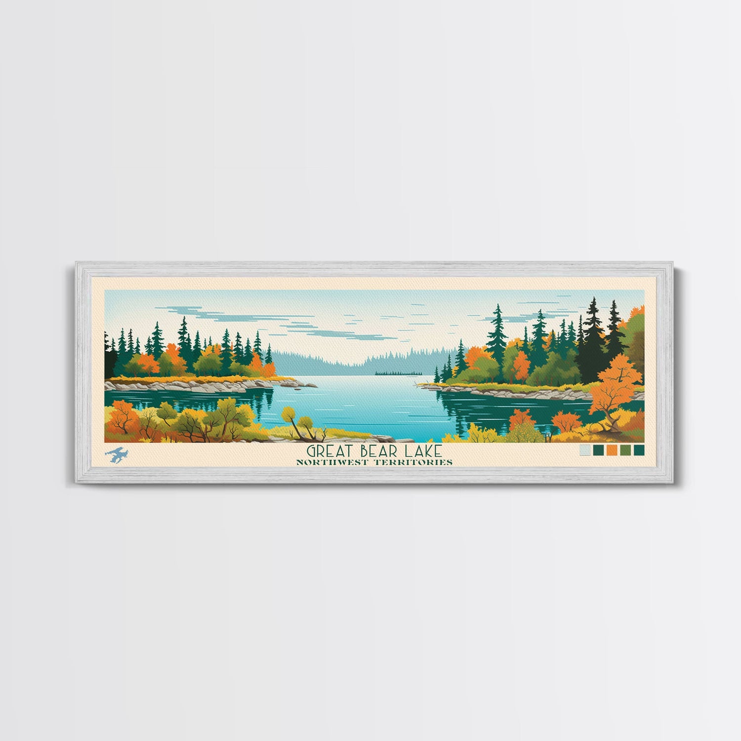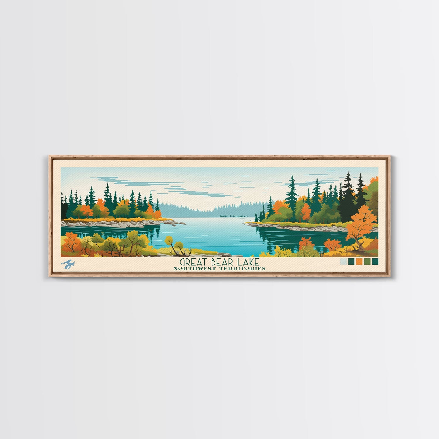 Great Bear Lake Northwest Framed Canvas Print, Panoramic Art, Midcentury Modern, Pop Art, Bedroom Decor, Travel Poster, Lake View, Wall Art