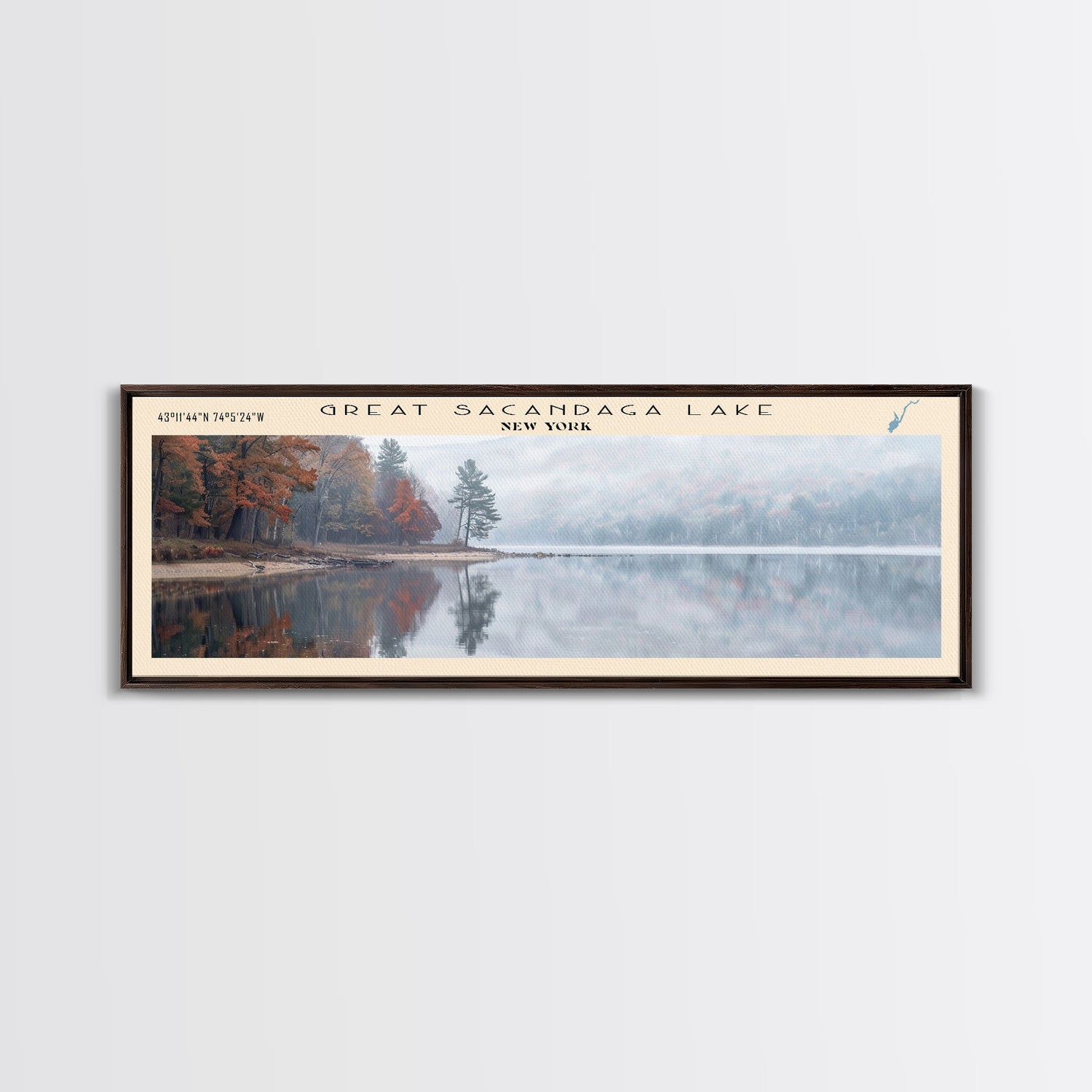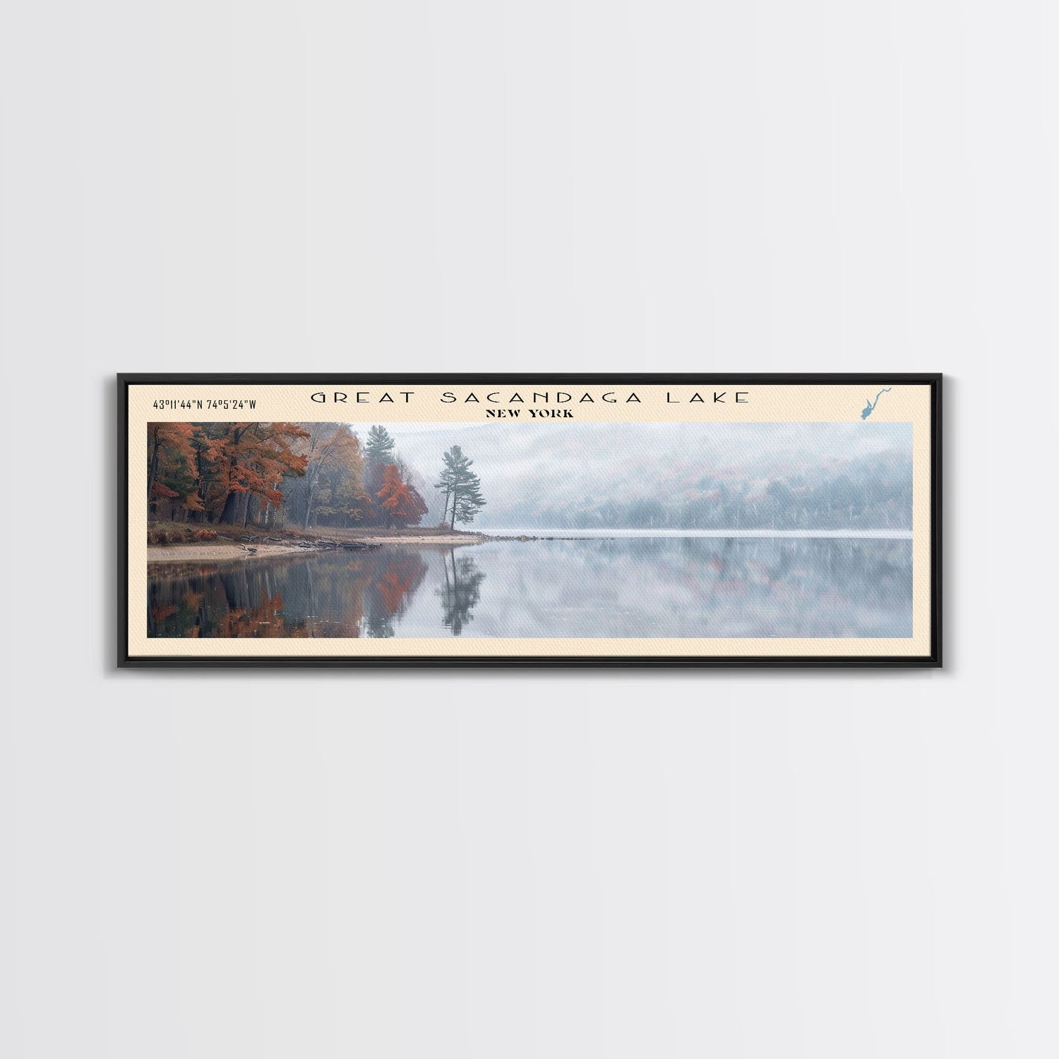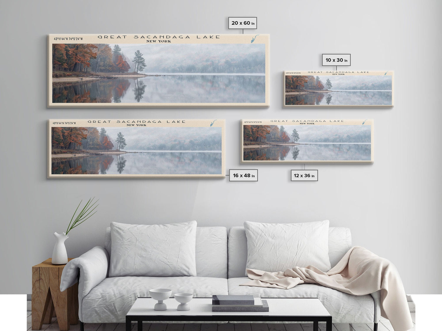Great Sacandaga Lake Framed Canvas Print, Lake House Art, Panoramic Wall Art, Travel Poster, Serene Lake Painting, Home Decor