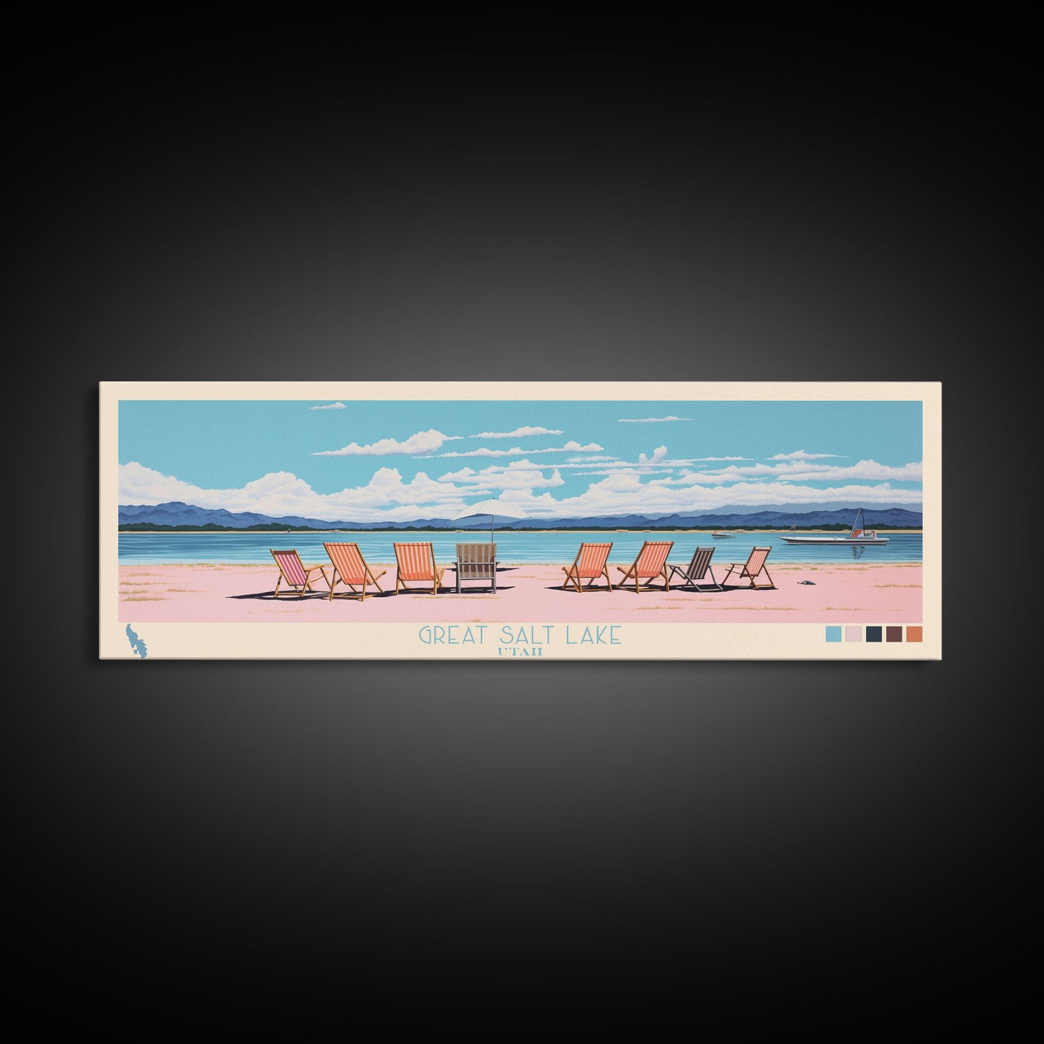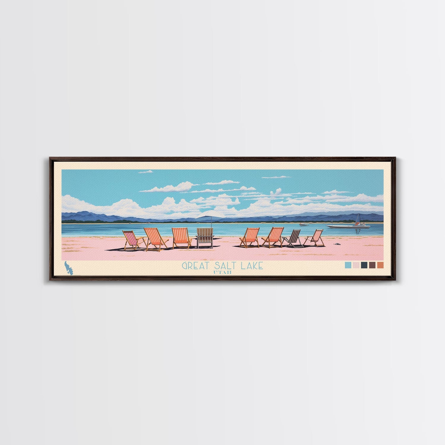 Great Salt Lake Utah Framed Canvas Print, Panoramic Wall Art, Midcentury Modern, Pop Art, Living Room Wall Art, Travel Poster, Nature Art, Artistic Decor