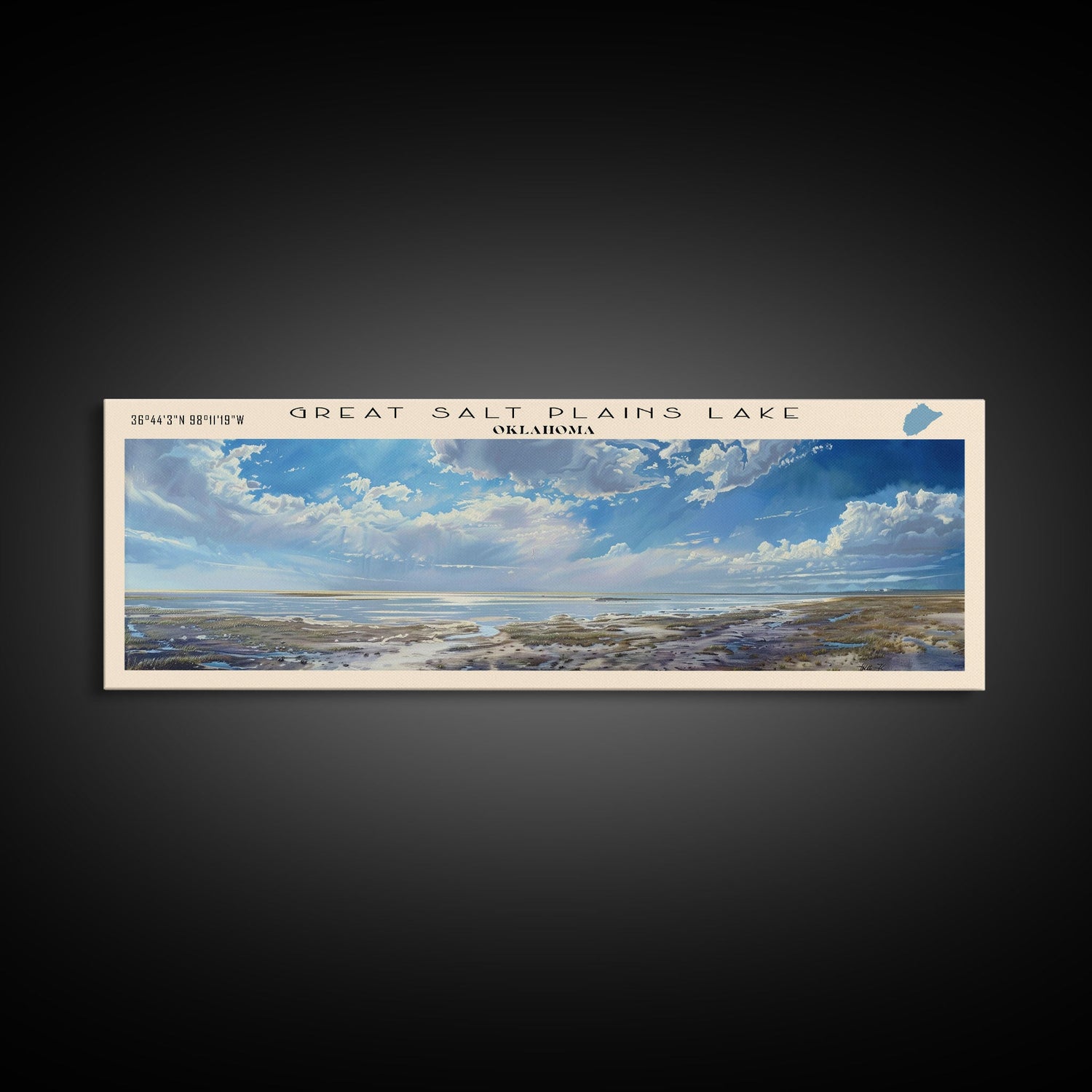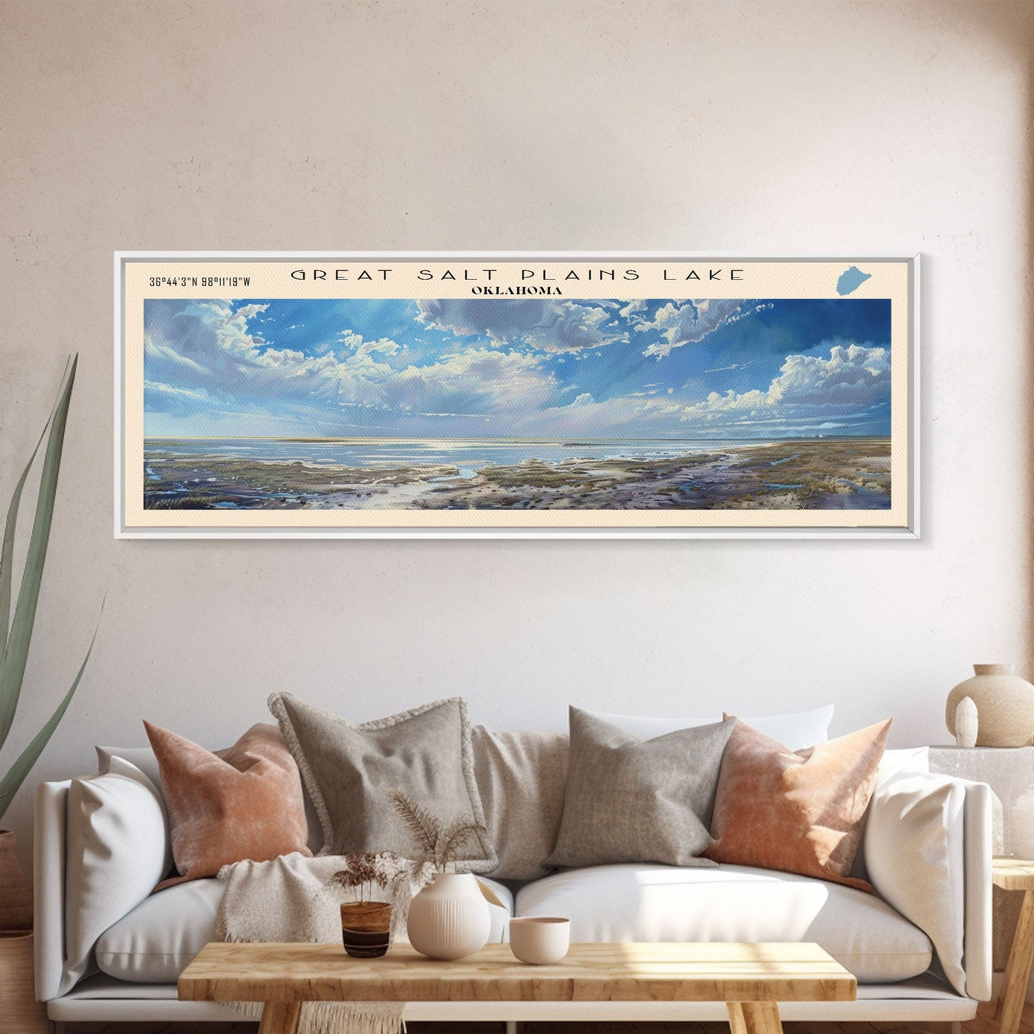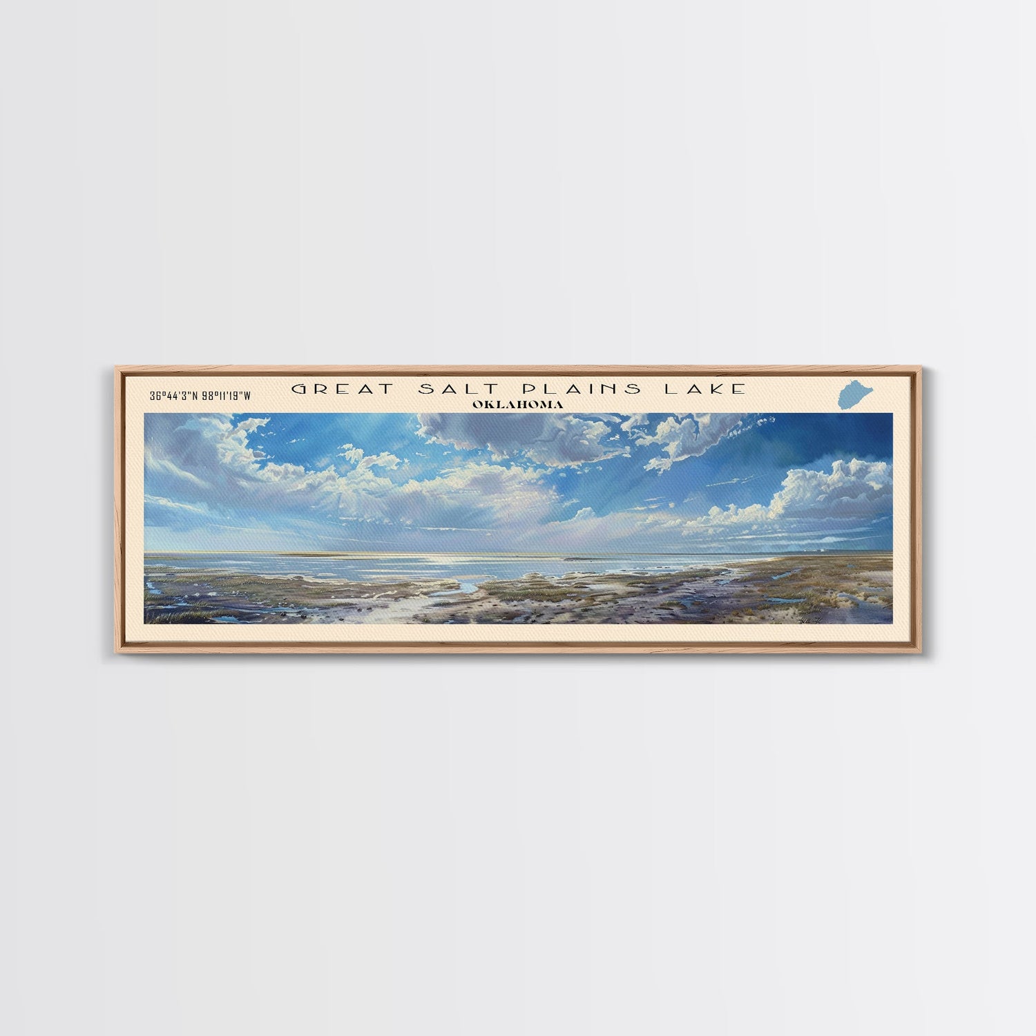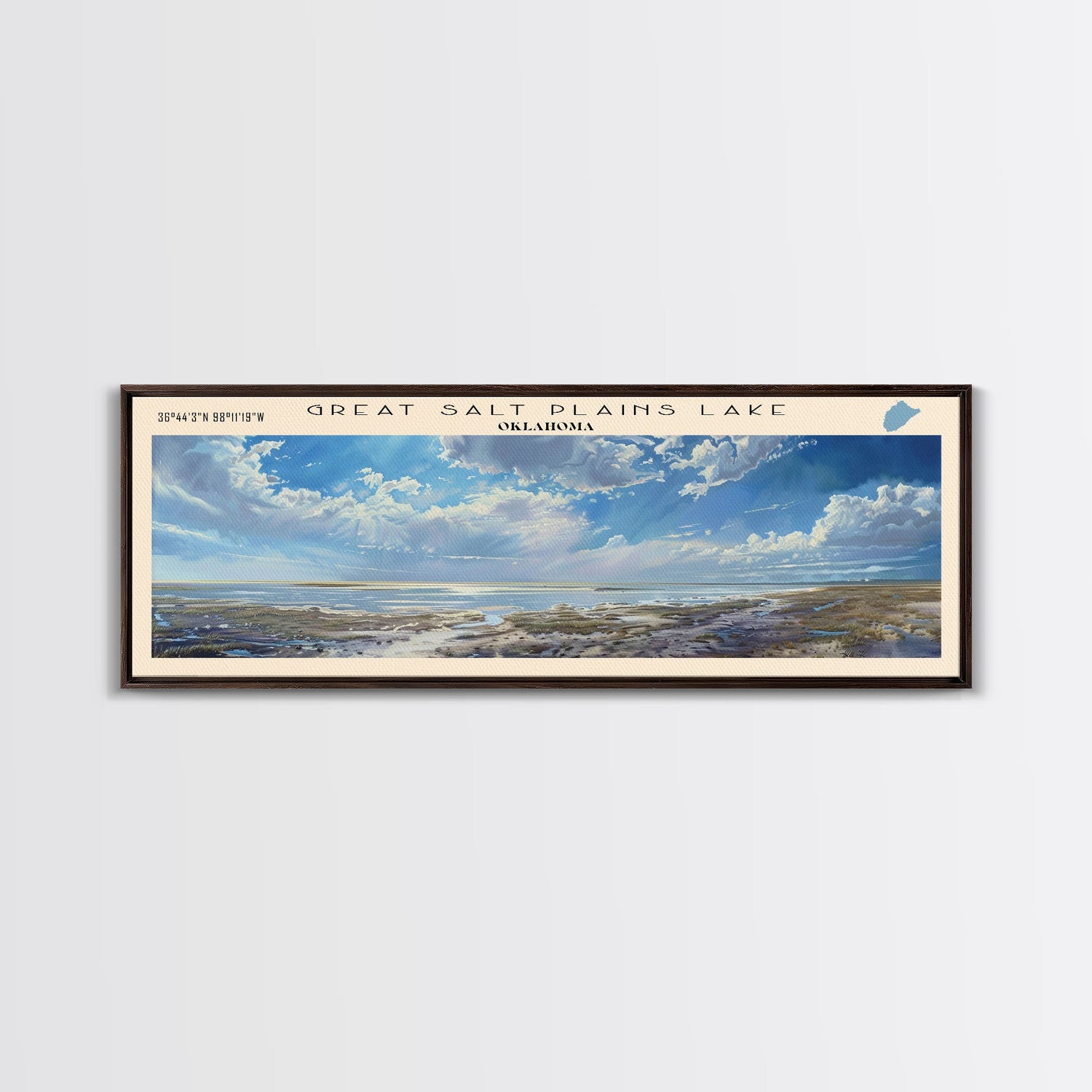 Great Salt Plains Lake Oklahoma Framed Canvas Print, Lake House Art, Panoramic Wall Art, Travel Poster, Scenic Lake Painting, Home Decor