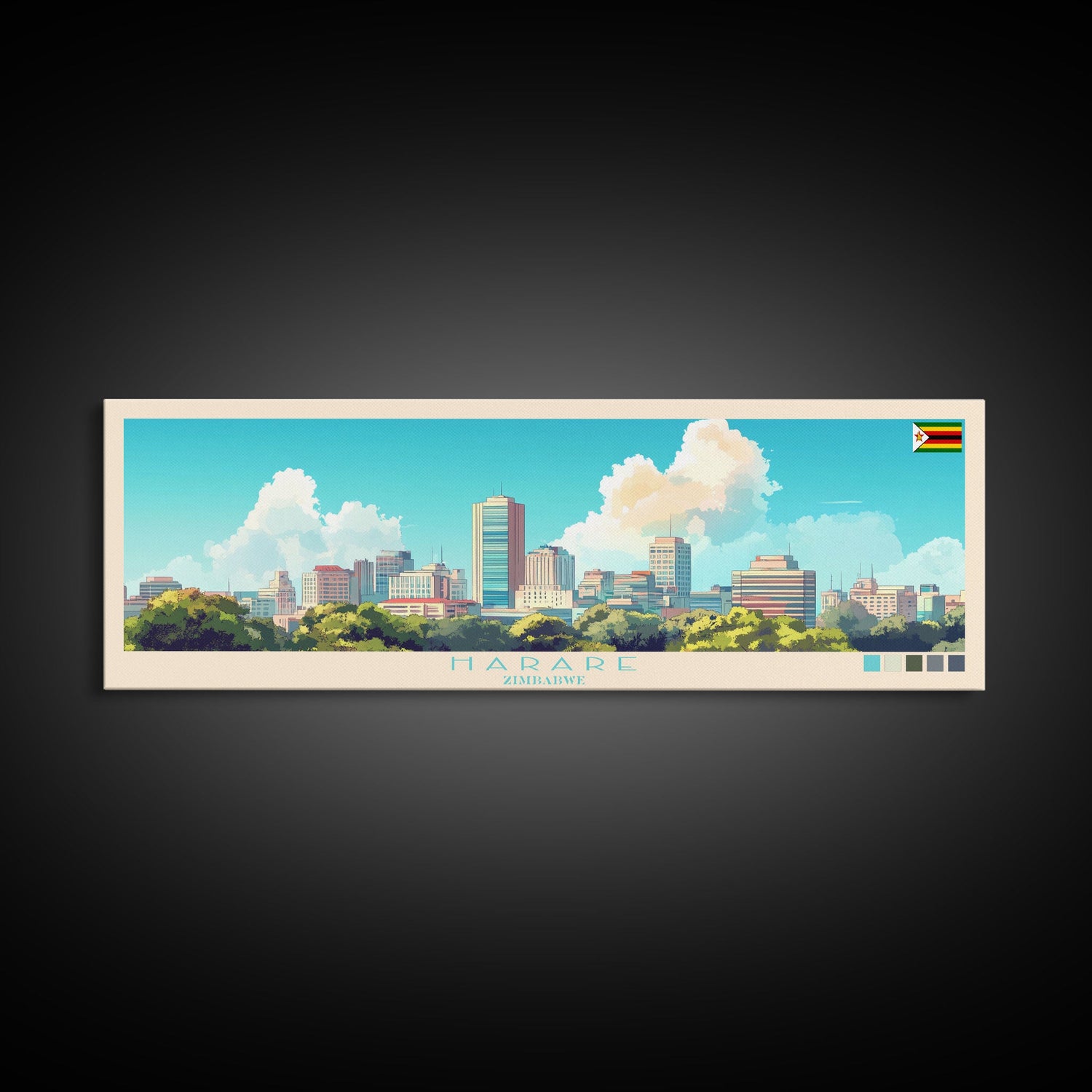 Harare, Zimbabwe Panoramic Travel Poster Canvas Print, Harare, Zimbabwe Painting, Zimbabwe Art, Harare Travel Art, Living Room Painting