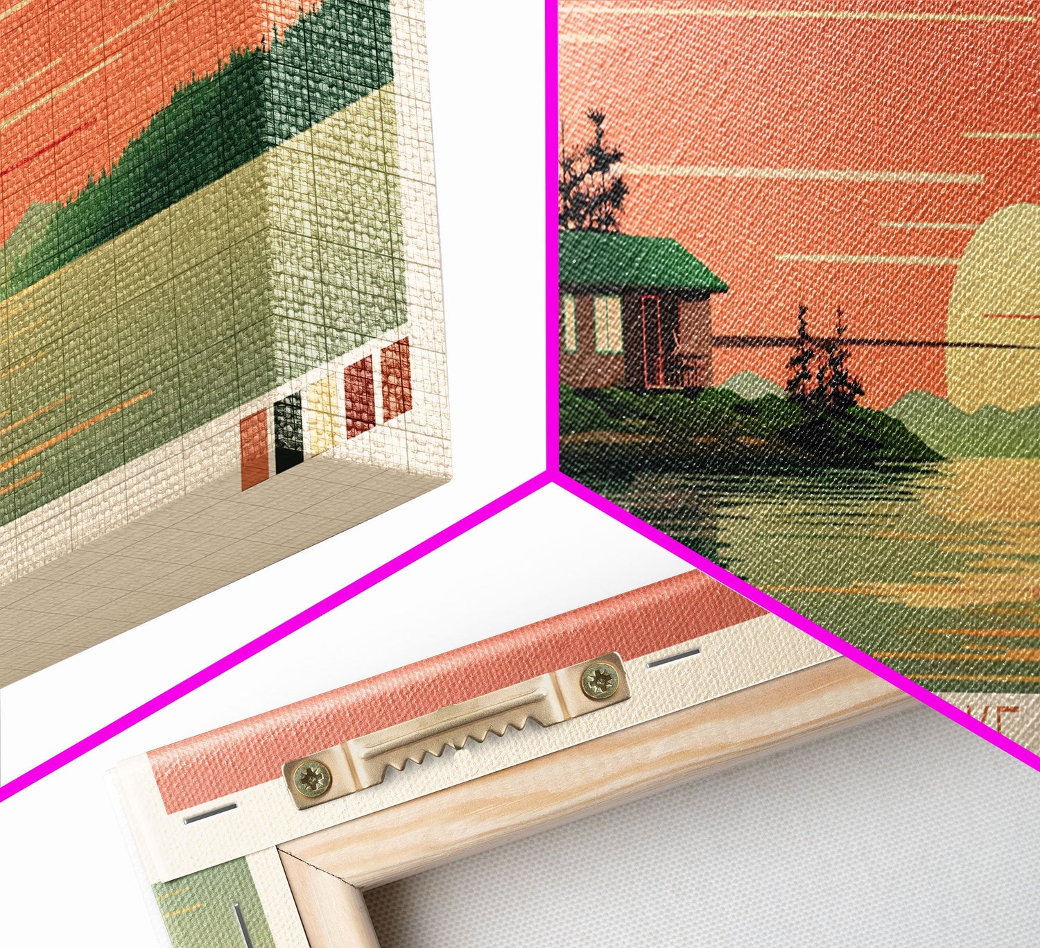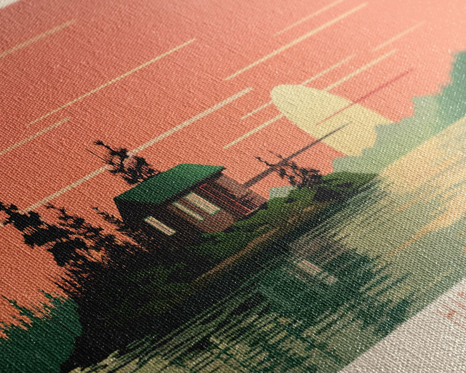 Harker Lake North Dakota Framed Canvas Print, Panoramic Wall Art, Midcentury Modern, Pop Art, Living Room Decor, Travel Poster, Lake House Art, Nature Art
