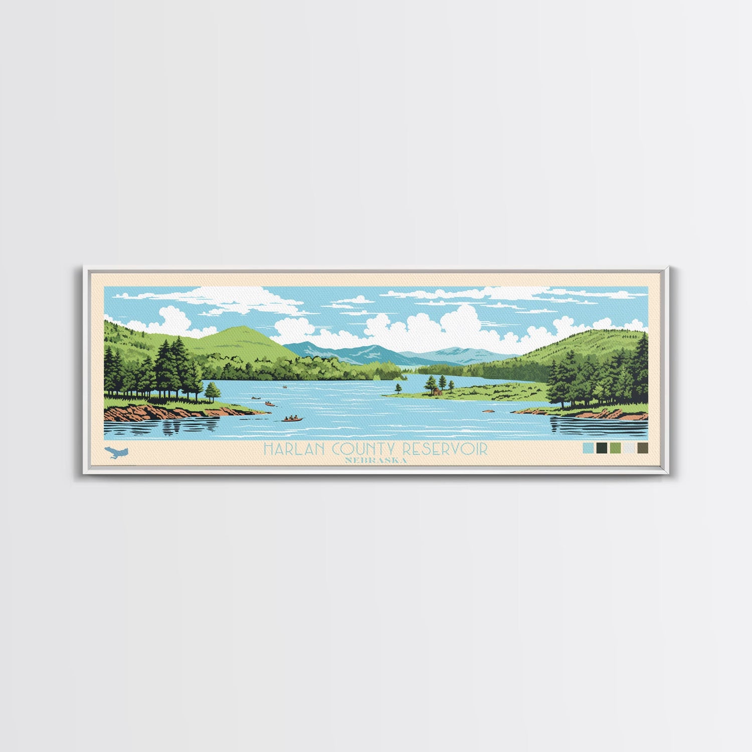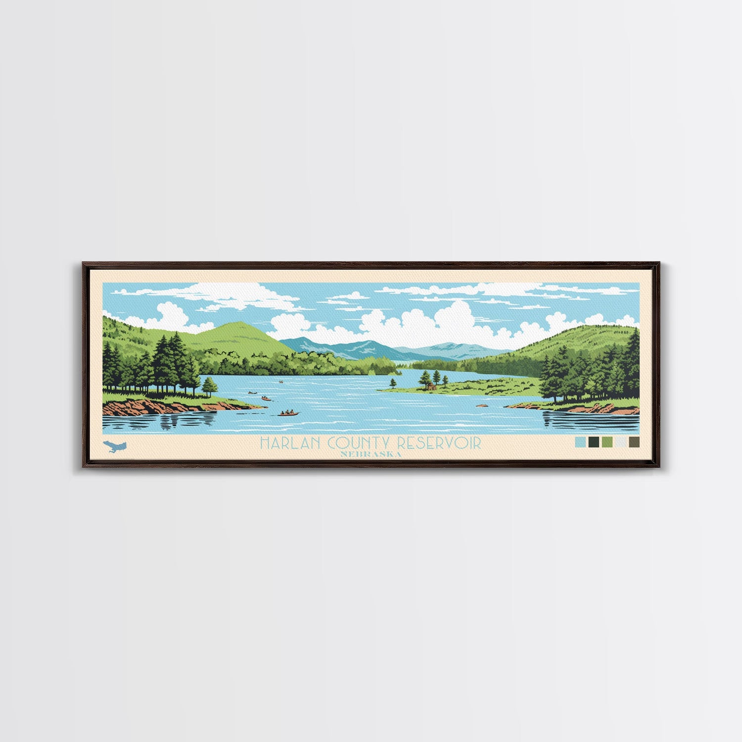 Harlan County Reservoir Nebraska Framed Canvas Print, Panoramic Art, Midcentury Modern, Pop Art, Bedroom Decor, Travel Poster, Nature Art, Home Decor