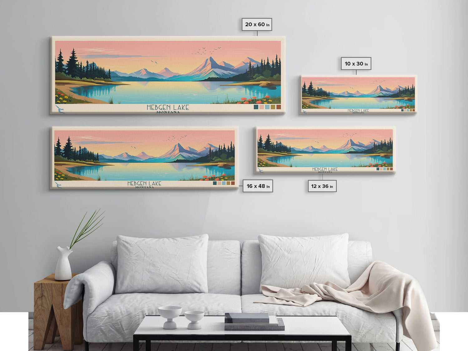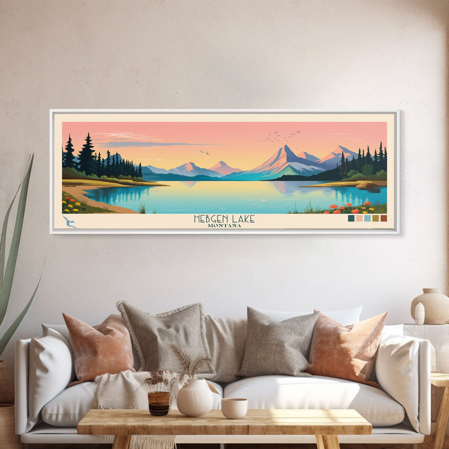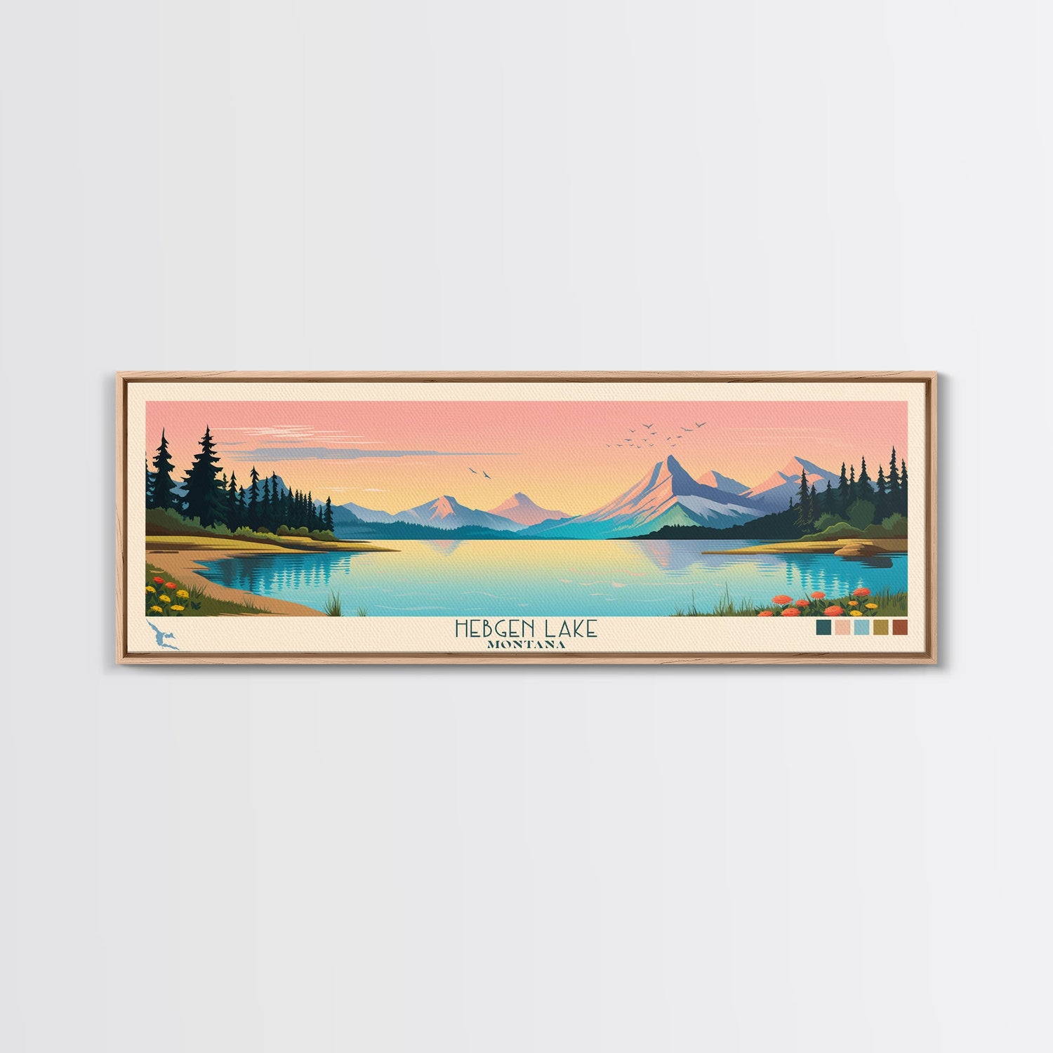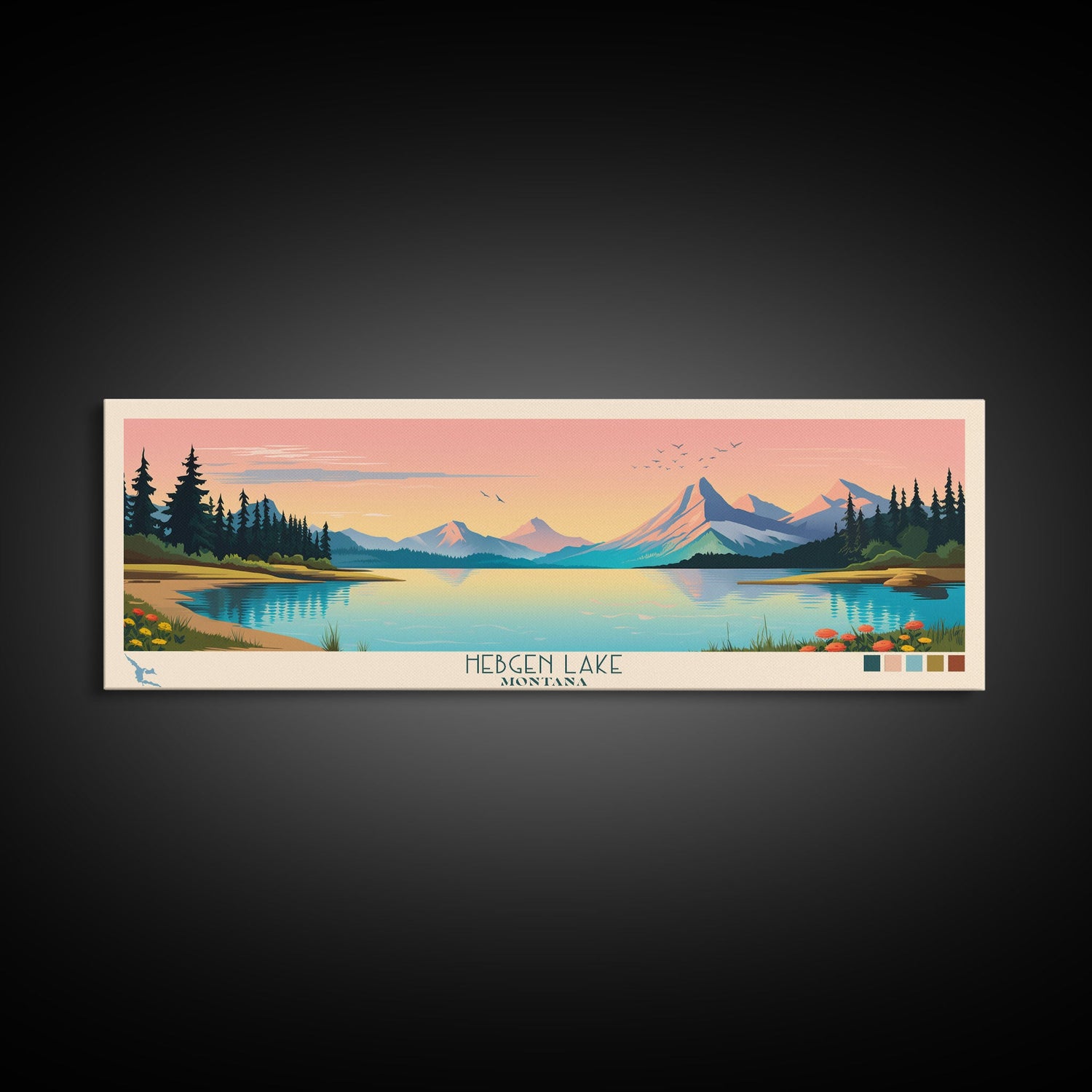Hebgen Lake Montana Framed Canvas Print, Panoramic Wall Art, Midcentury Modern, Pop Art, Living Room Decor, Travel Poster, Nature Art, Lake House Art