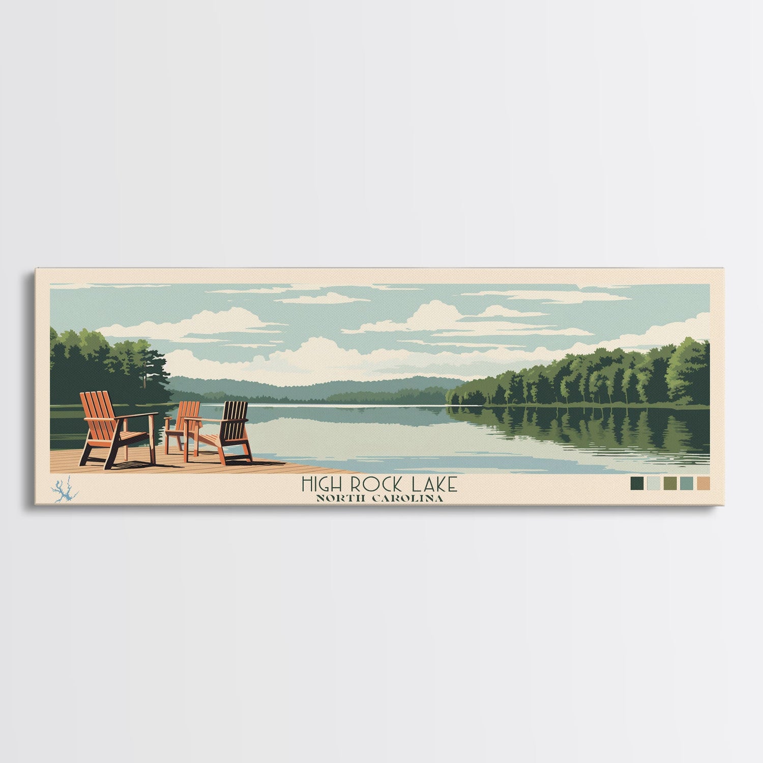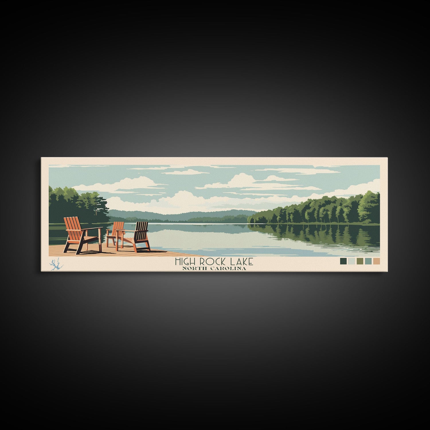 High Rock Lake North Carolina Framed Canvas Print, Panoramic Wall Art, Midcentury Modern, Pop Art, Living Room Decor, Travel Poster, Bedroom Art