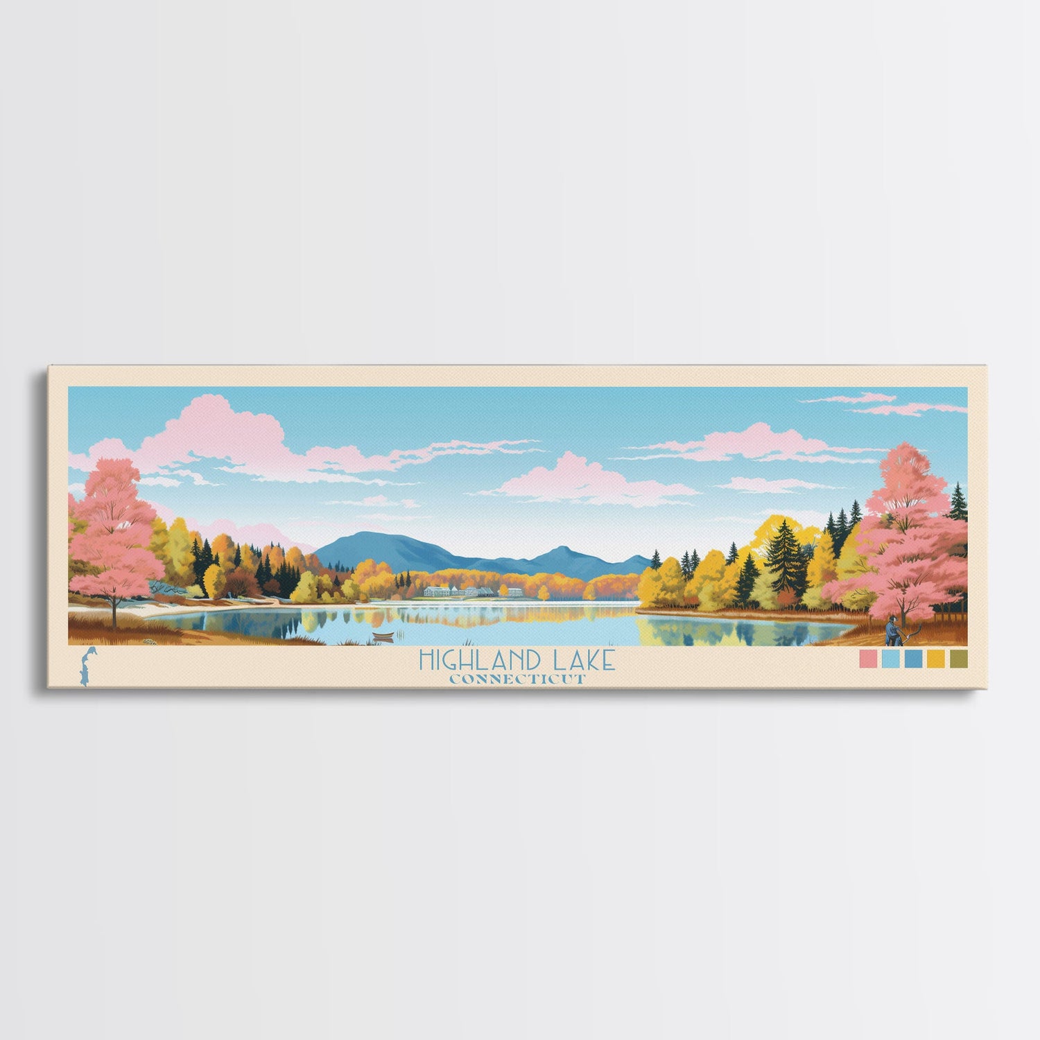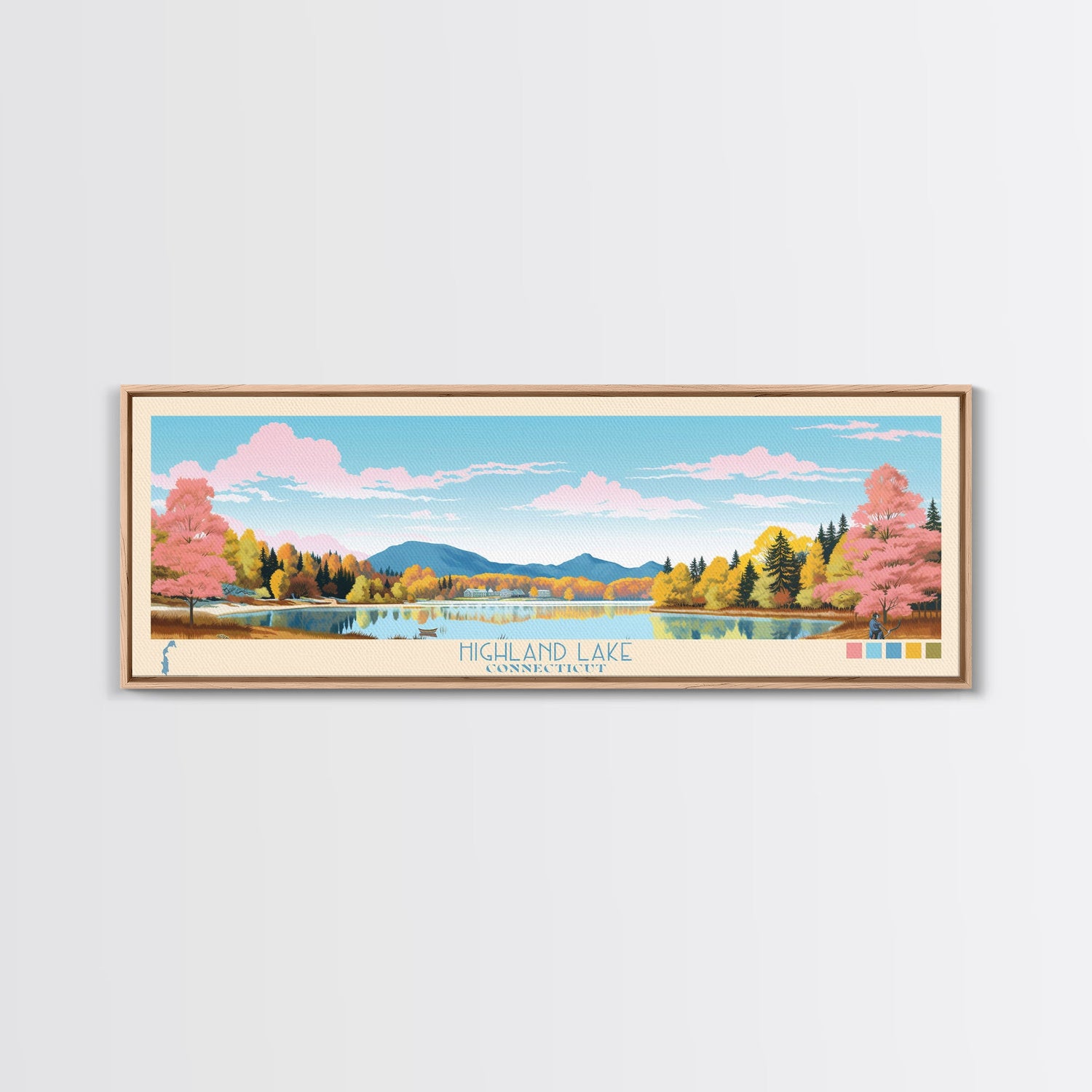 Highland Lake Connecticut Framed Canvas Print, Panoramic Art, Midcentury Modern, Pop Art, Lake House Decor, Travel Poster, Living Room Art - 10x30 Inches / Gallery Wrap Canvas - Ready To Hang is backordered and will ship as soon as it is back in stock.