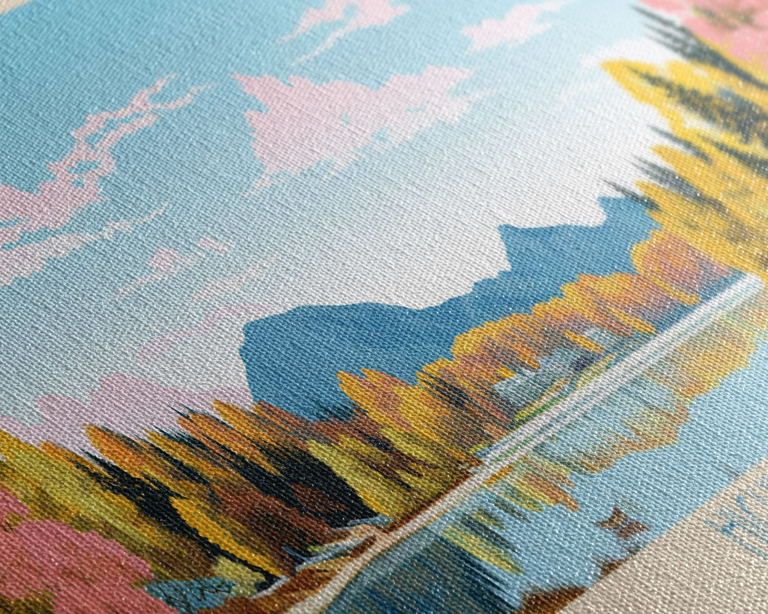 Highland Lake Connecticut Framed Canvas Print, Panoramic Art, Midcentury Modern, Pop Art, Lake House Decor, Travel Poster, Living Room Art