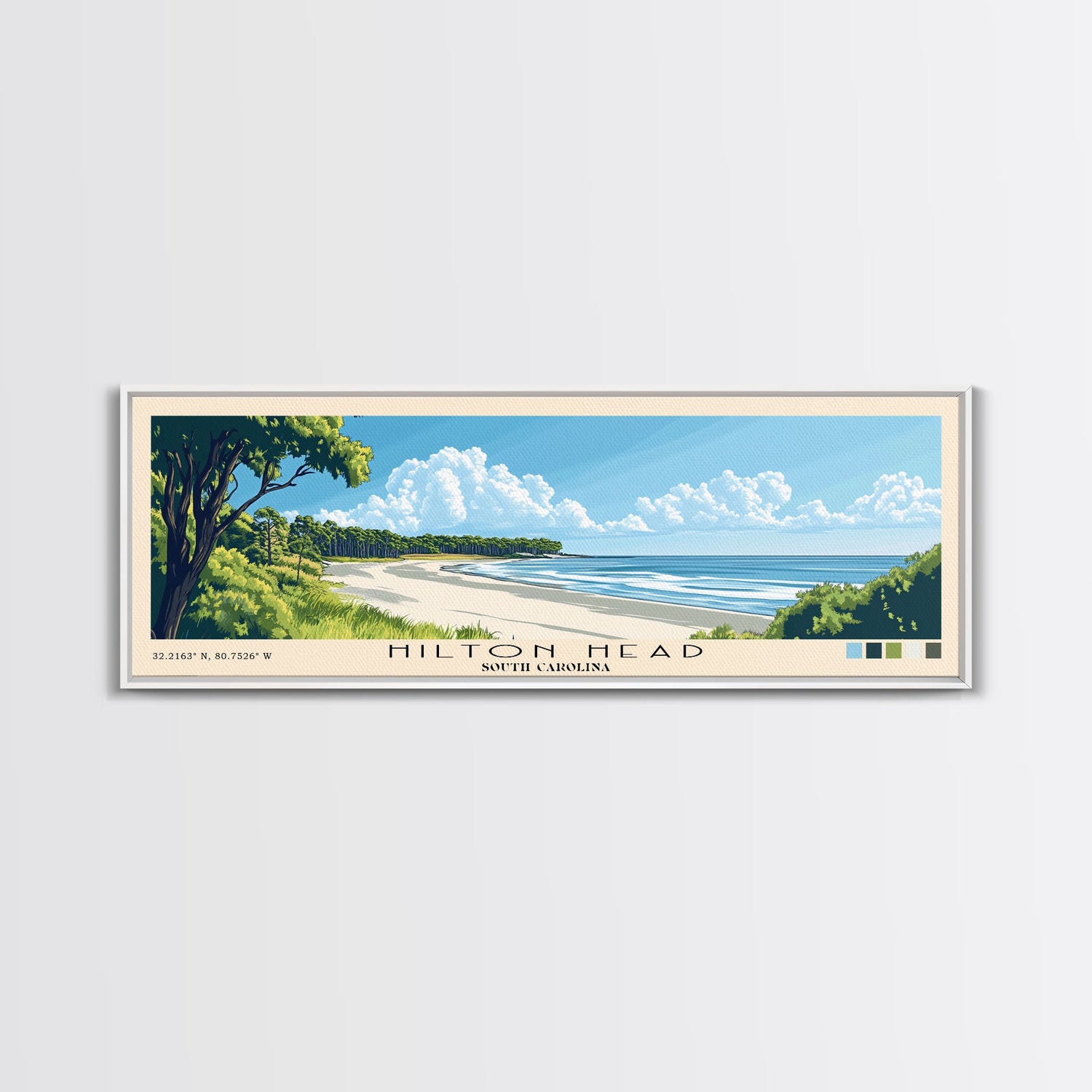 Hilton Head, South Carolina Panoramic Beach Print, Vacation Gift, South Carolina Wall Art, Framed Canvas Print, Framed Beach Painting